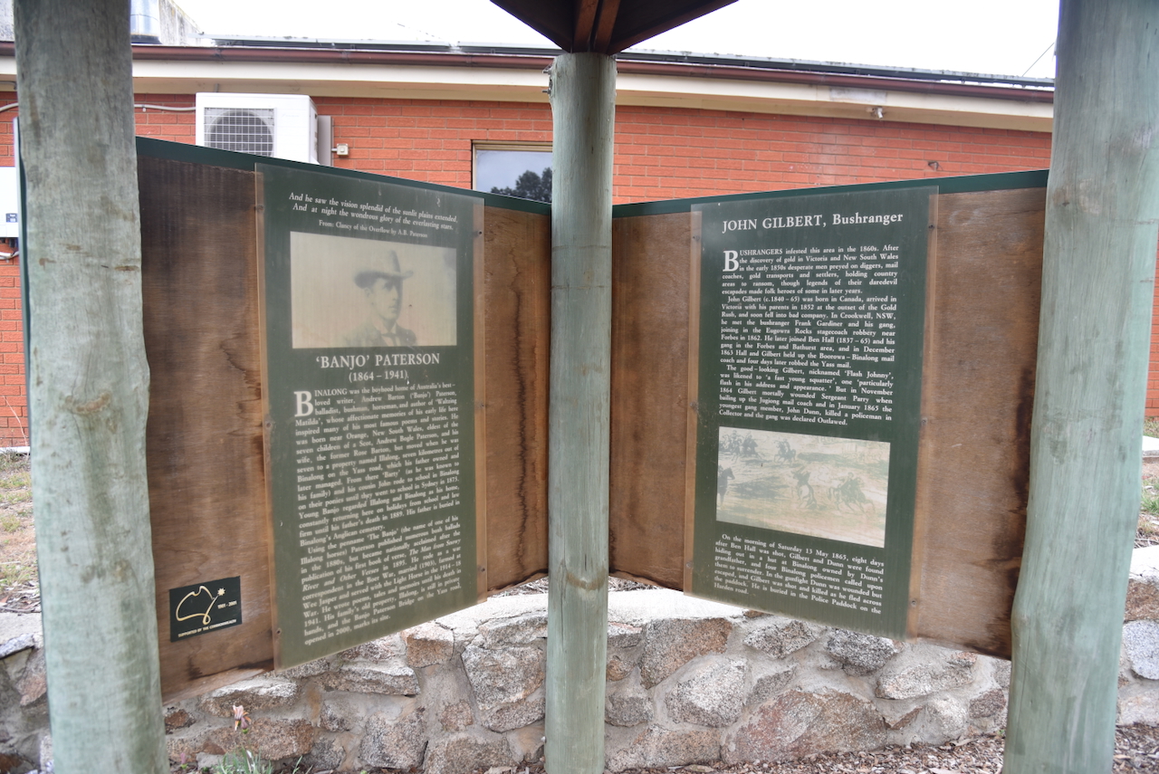 There is also a bust of the Australian poet, Banjo Patterson, who spent part of his childhood at nearby Yass. Patterson drew inspiration from the rural life of the area and the bushranger John Gilbert.