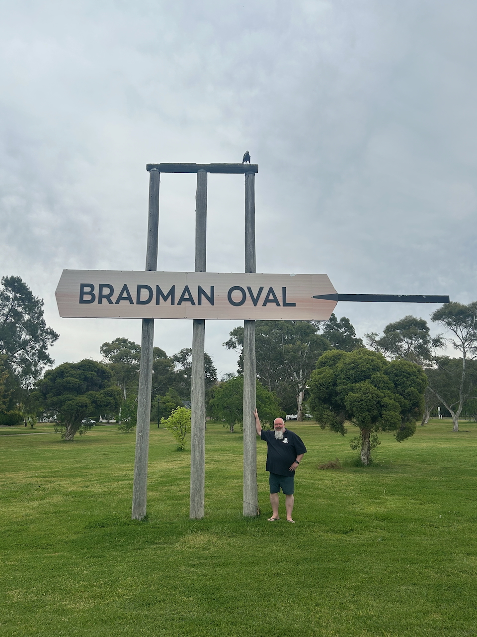 After a very interesting visit to the Bradman museum, Marija and I headed to the Bradman Oval at Cootamundra to view “The Big Stumps.” The stumps stand eight metres tall.