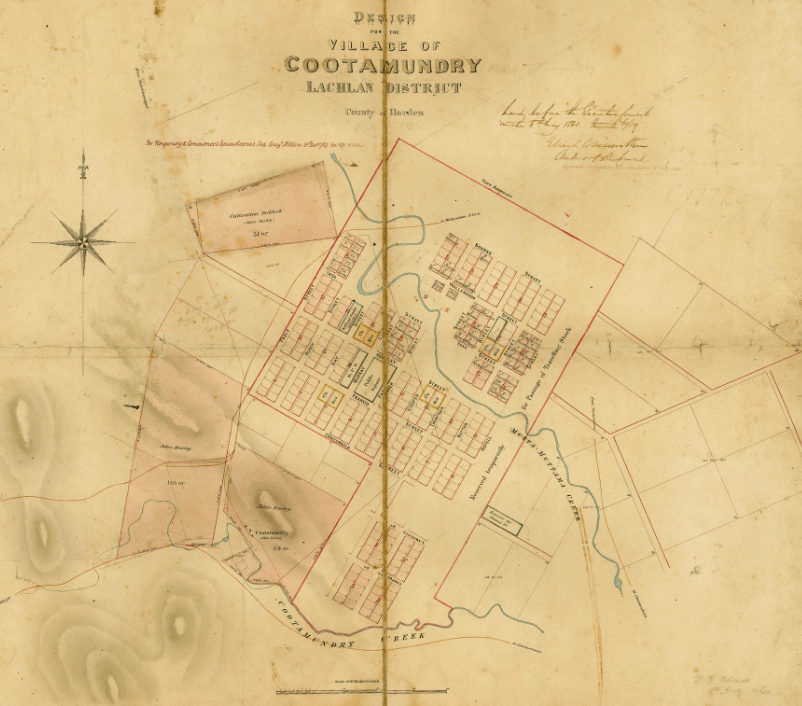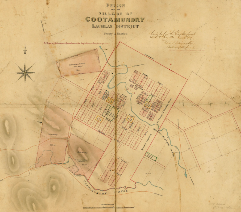 In 1860, Surveyor Philip Francis Adams drew up plans of the village of Cootamundry. The name is derived from an Aboriginal word meaning ‘place below’ or ‘low-lying.’ (Trove 2026)