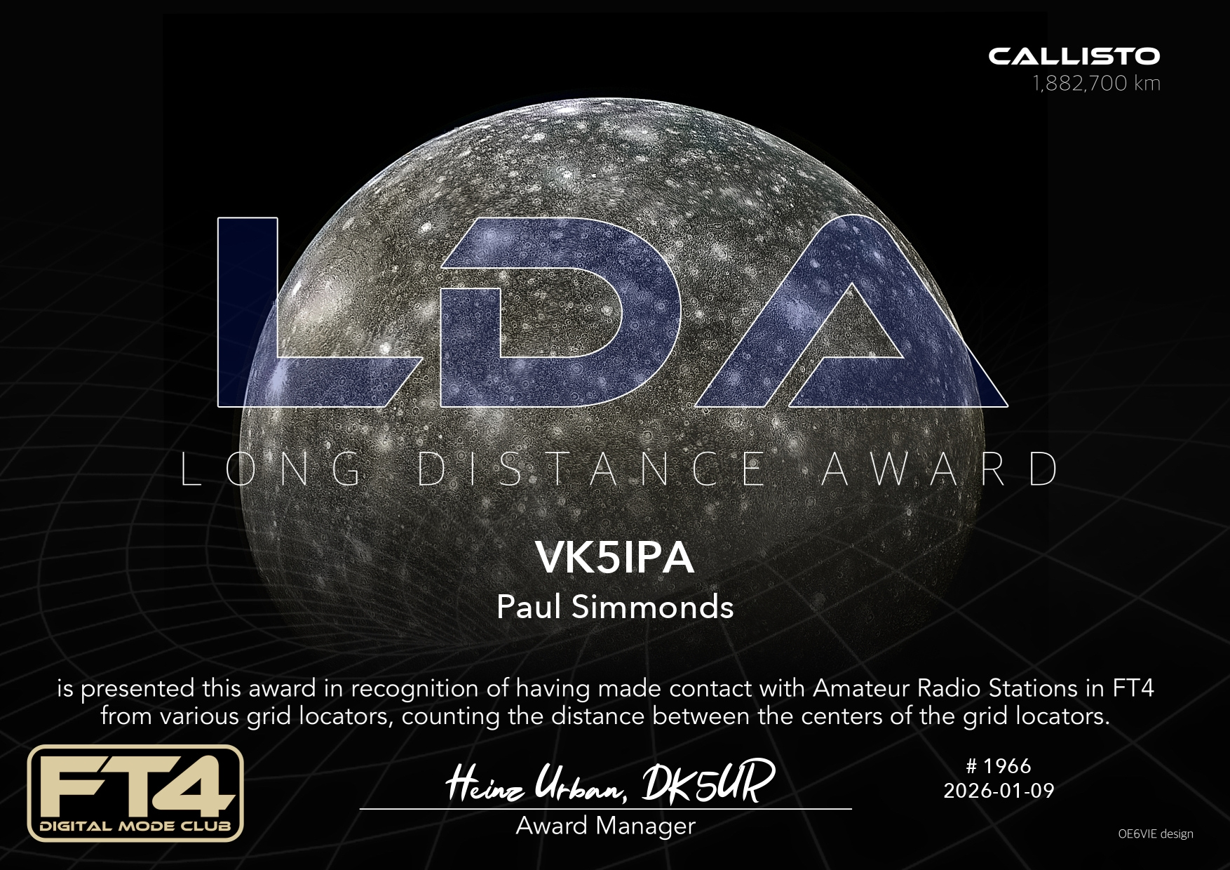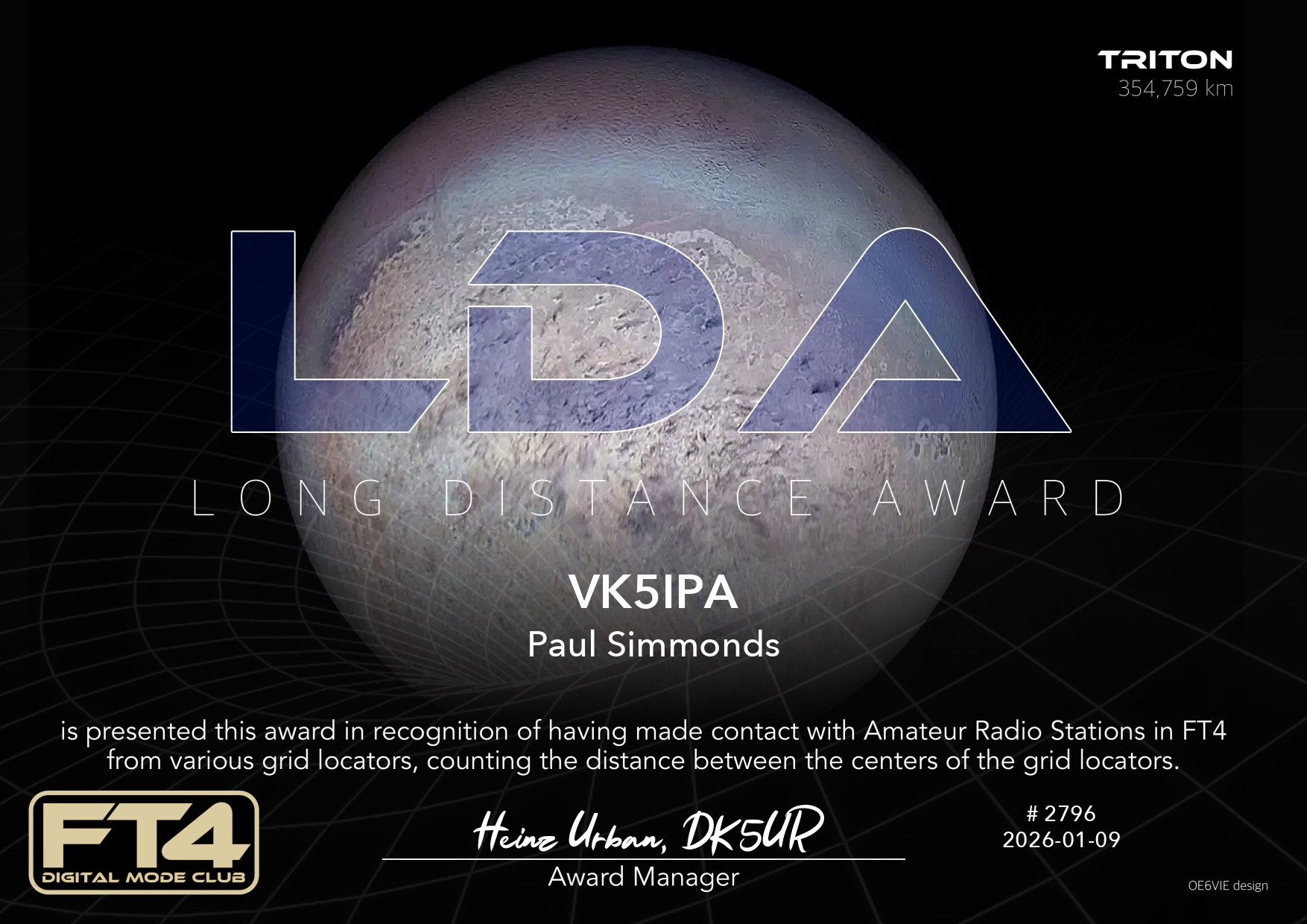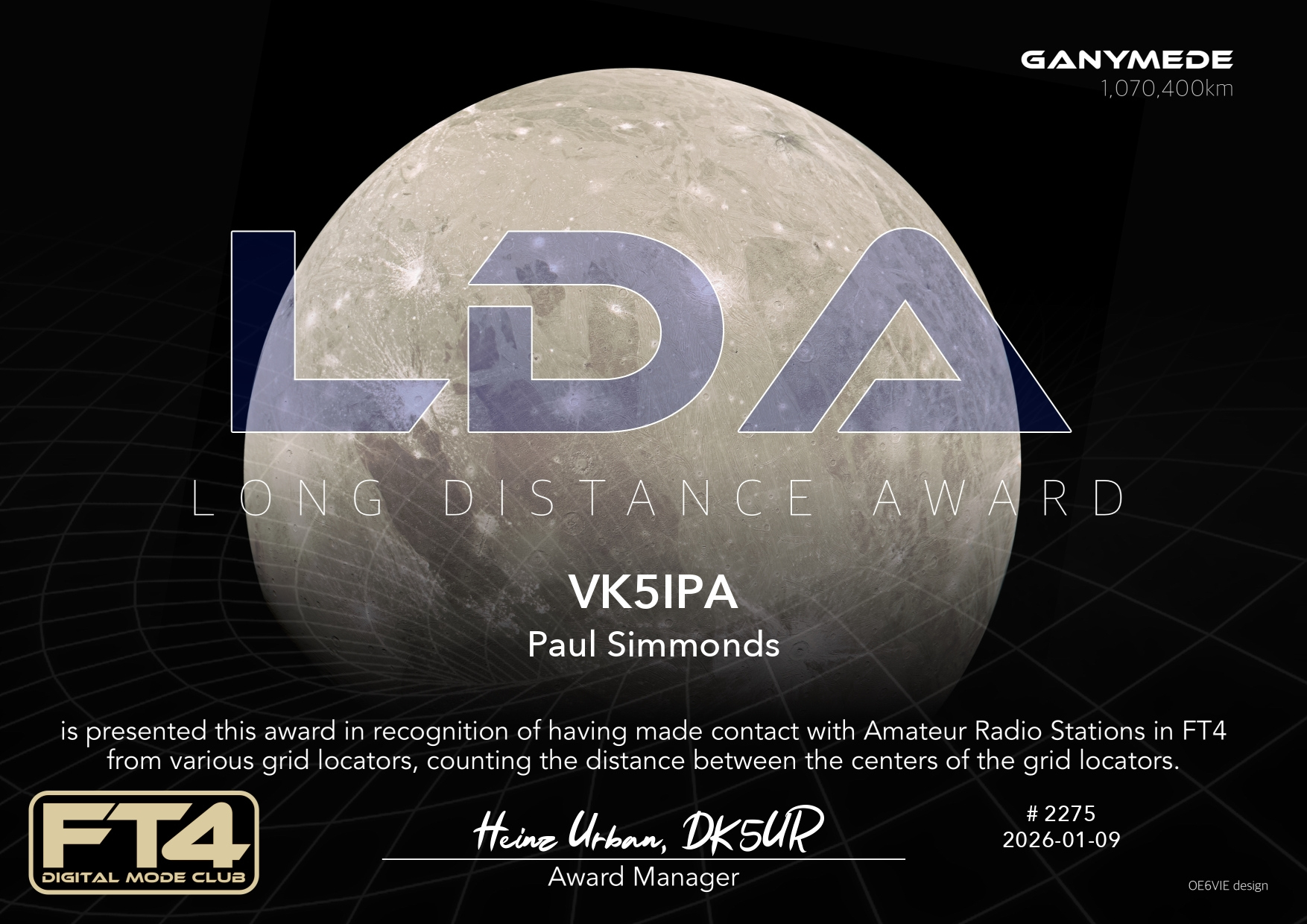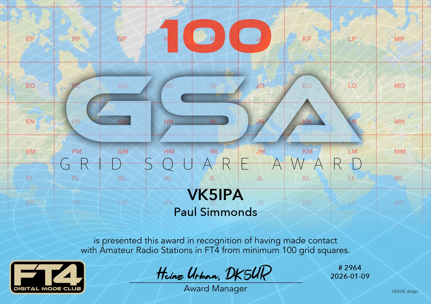 Here is a selection of FT4 award certificates received for VK5IPA, my callsign for the International Police Association.