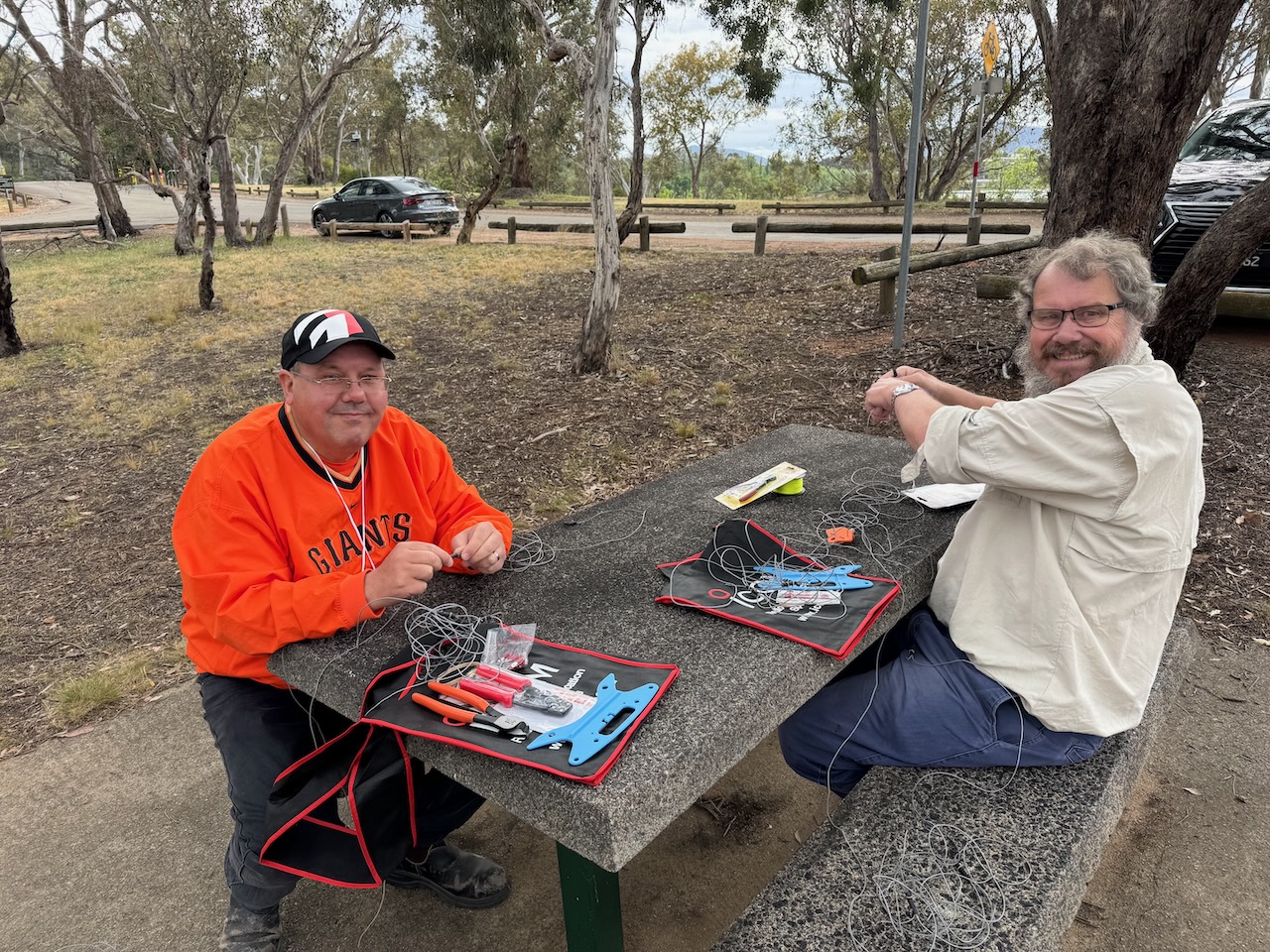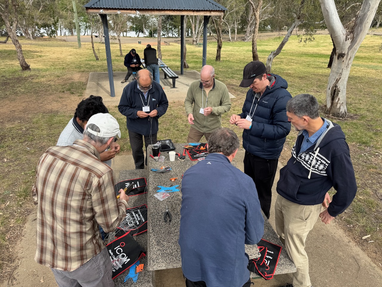 On Sunday morning, following the BBQ, there was a linked dipole construction session. It was an opportunity for many to construct their very first antenna.