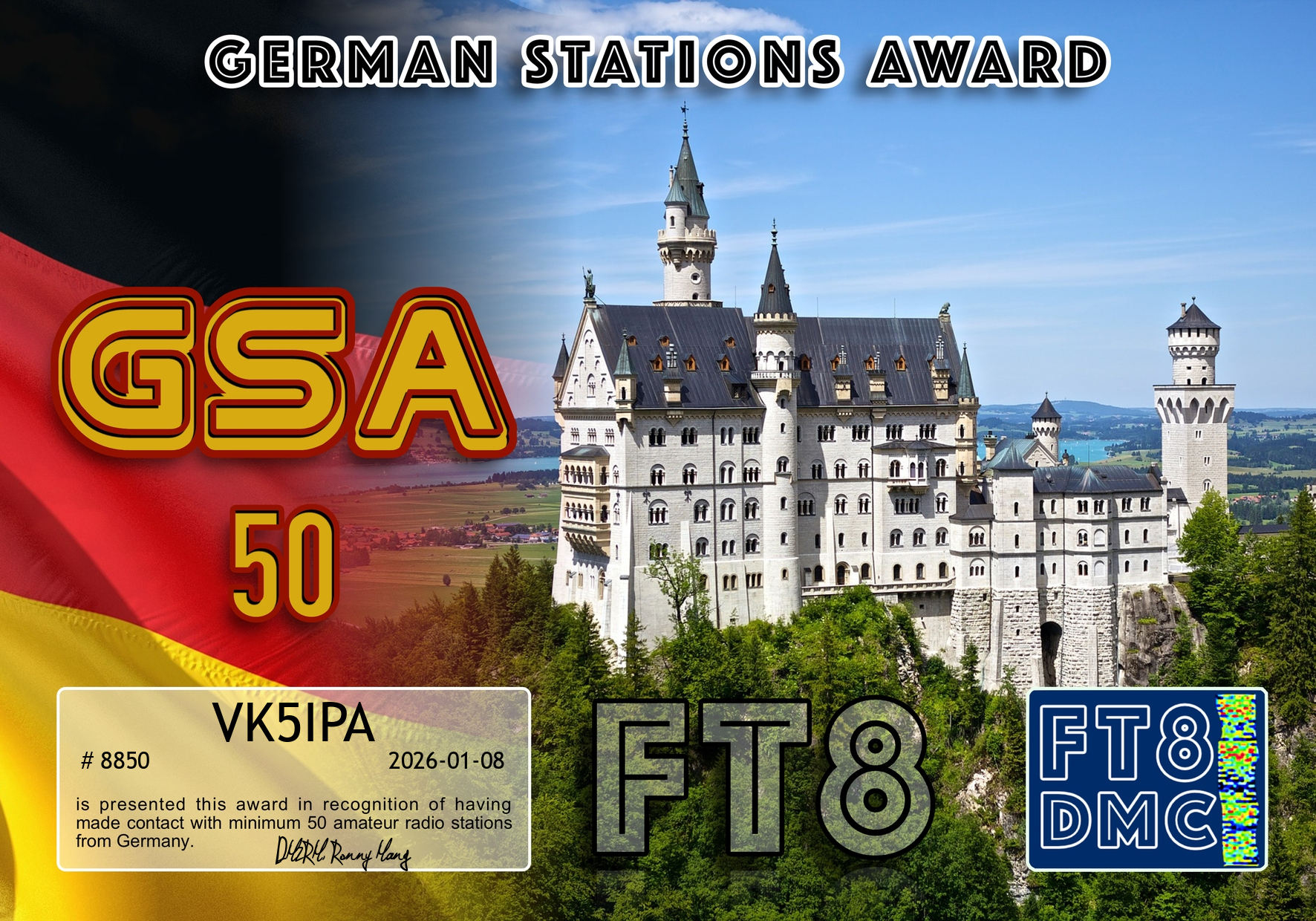 Here is a selection of FT8 Europe awards for VK5IPA.