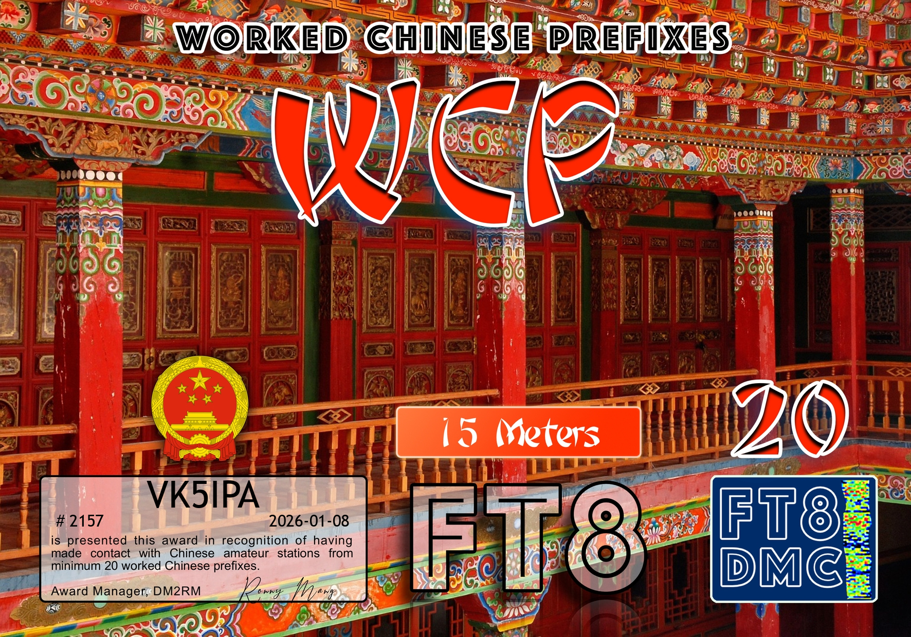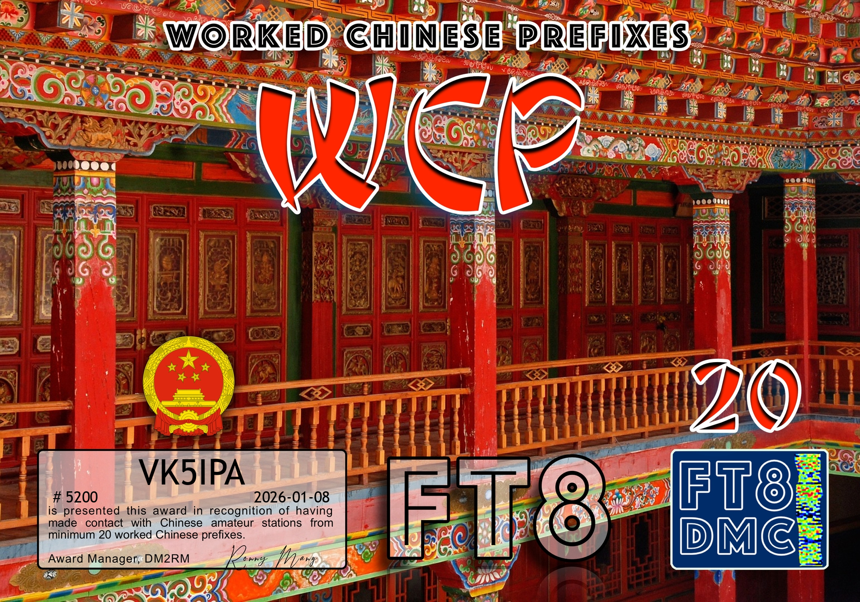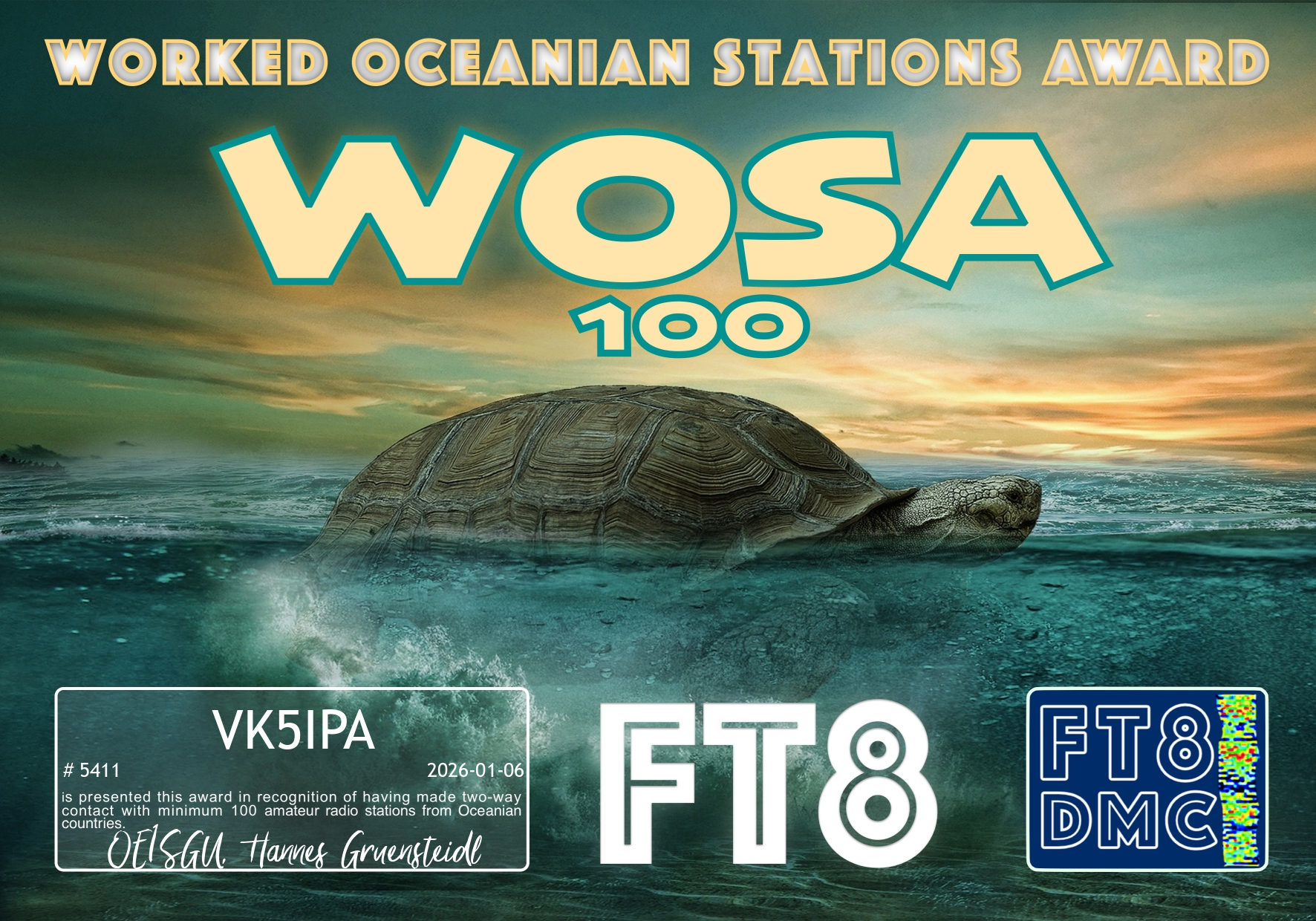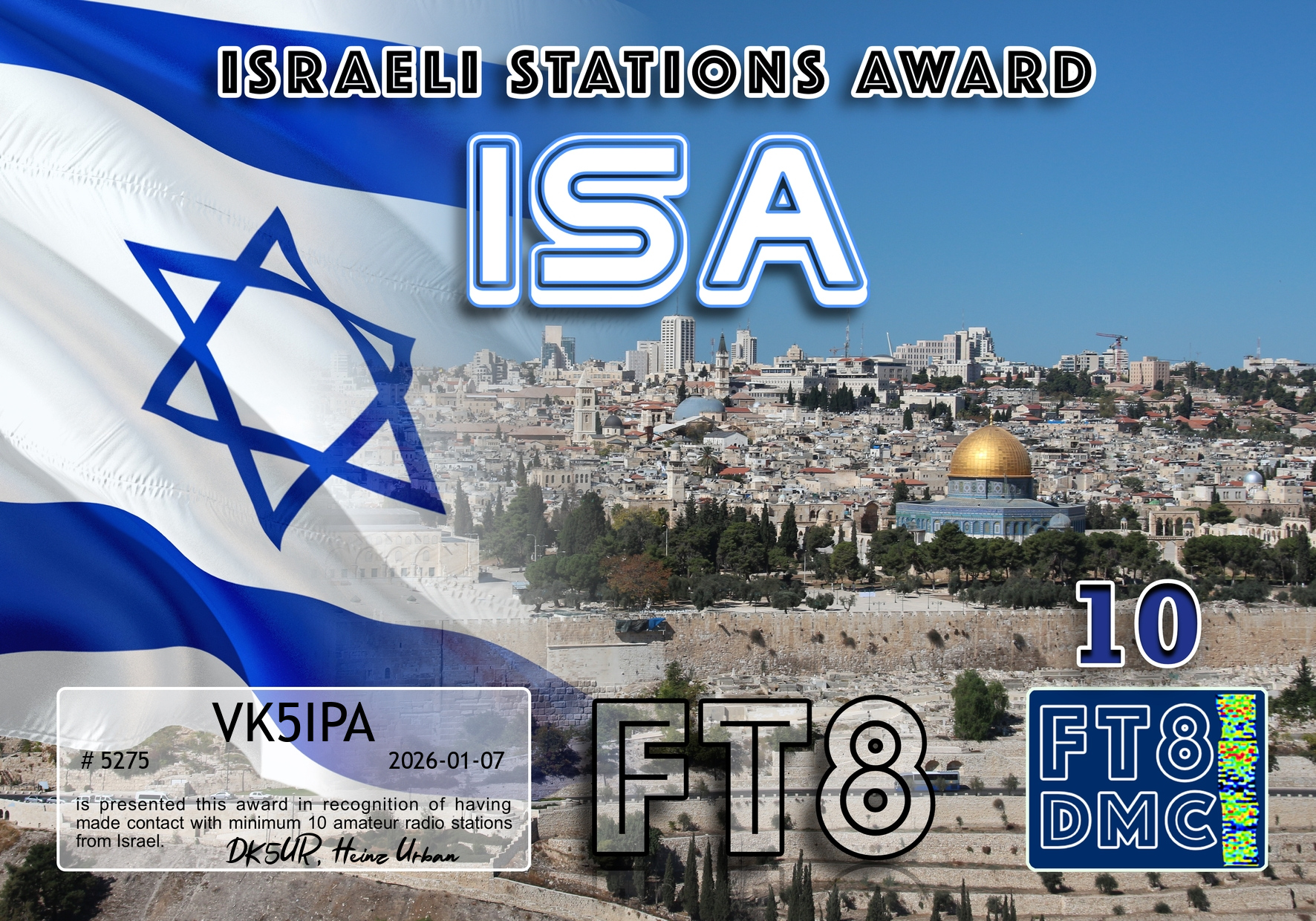 Here are some more FT8 award certificates received for VK5IPA. These are for working stations in Pakistan, Kyrgyzstan, Kazakhstan, Qatar and other countries in the Middle East.