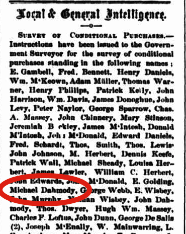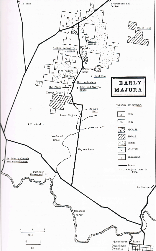 In August 1863, Michael purchased land at Majura. Over the following several years, additional land was purchased by John and Mary, and their sons Michael, Thomas, James, and William. (ancestry 2016)