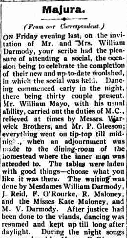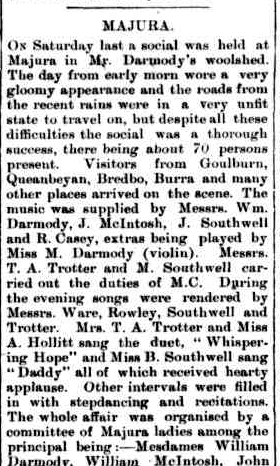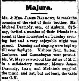 5. ‌Trove. (2026). MAJURA. – The Queanbeyan Observer (NSW : 1894 – 1908; 1910 – 1915) – 17 Feb 1914. [online] Available at: https://trove.nla.gov.au/newspaper/article/235814322?searchTerm=darmody%20%2B%20majura [Accessed 28 Jan. 2026].