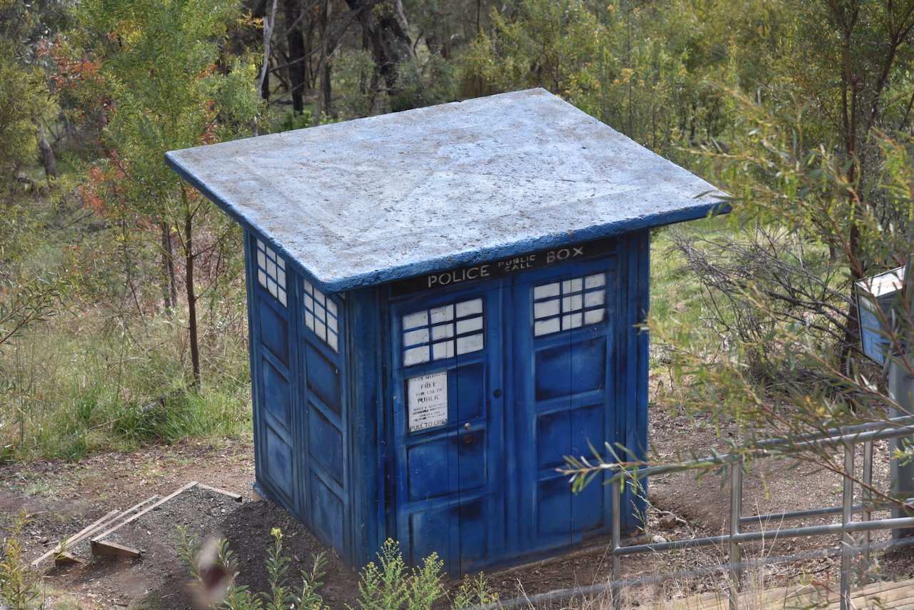 Prior to activating, we discovered the police box, the TARDIS, which is located in the park. It is actually a utility box that has been painted blue to resemble the TARDIS. The TARDIS stands for Time and Relative Dimension in Space, and is the time machine of Doctor Who.
