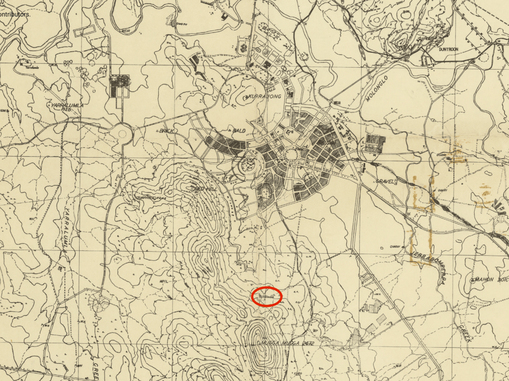 Above: A 1942 map showing the location of Narrabundah. Map c/o mapsearch.nla.gov.au