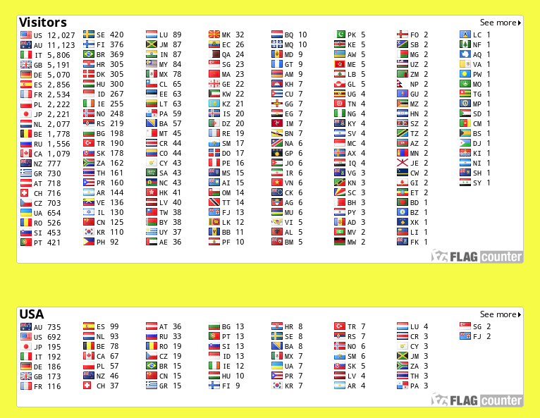 The other excellent site, called Flag Counter, is still working. Flag Counter’s free counter can be added to your website or blog and collects flags from around the world. Each time someone from a new country visits your website, a flag is added to your counter. Below are my flag counters from my QRZ.com page.