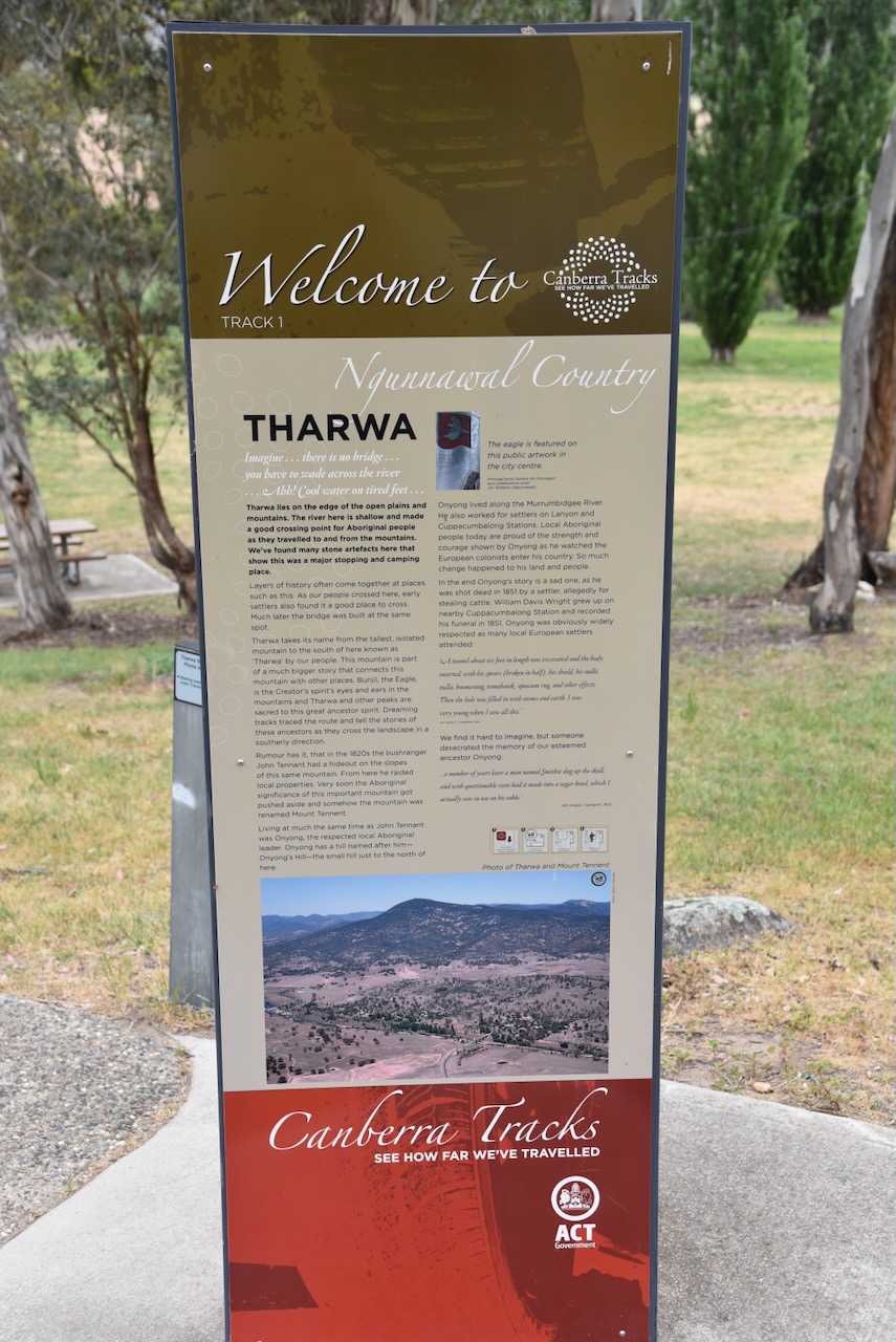 Tharwa is the Aboriginal word for nearby Mount Tennent, which is located in the Namadgi National Park. Mount Tennant is named after the bushranger John Tennant. (Wikipedia n.d.)