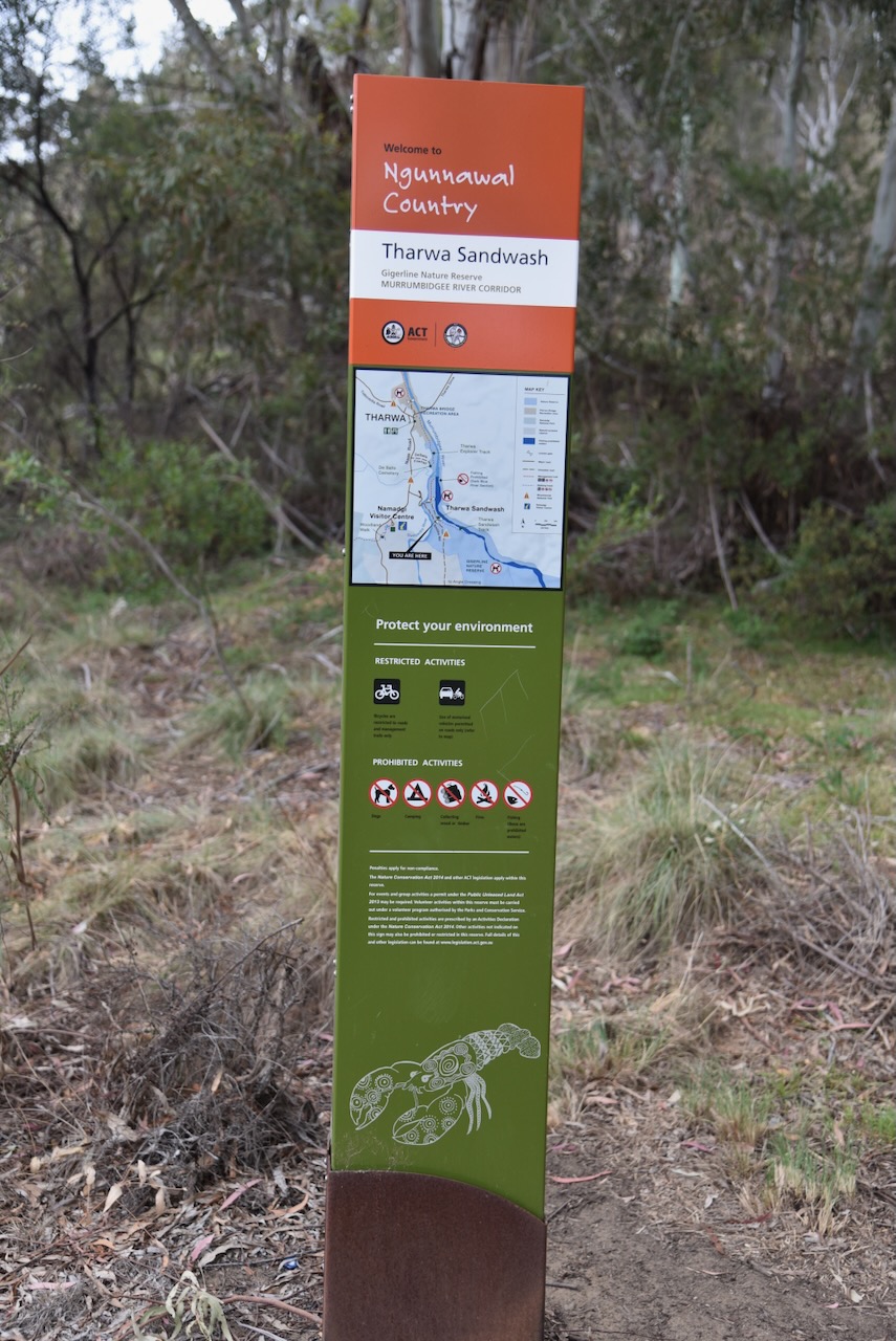 Not far along Smiths Road, Marija and I reached the sign for Tharwa Sandwash. This is beautiful countryside, and we were rewarded with some very nice views of the Murrumbidgee River.