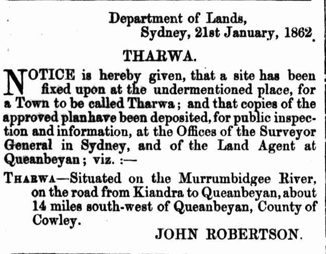 Above: NSW Govt Gazette, Fri 24 Jan 1862. Image c/o Trove