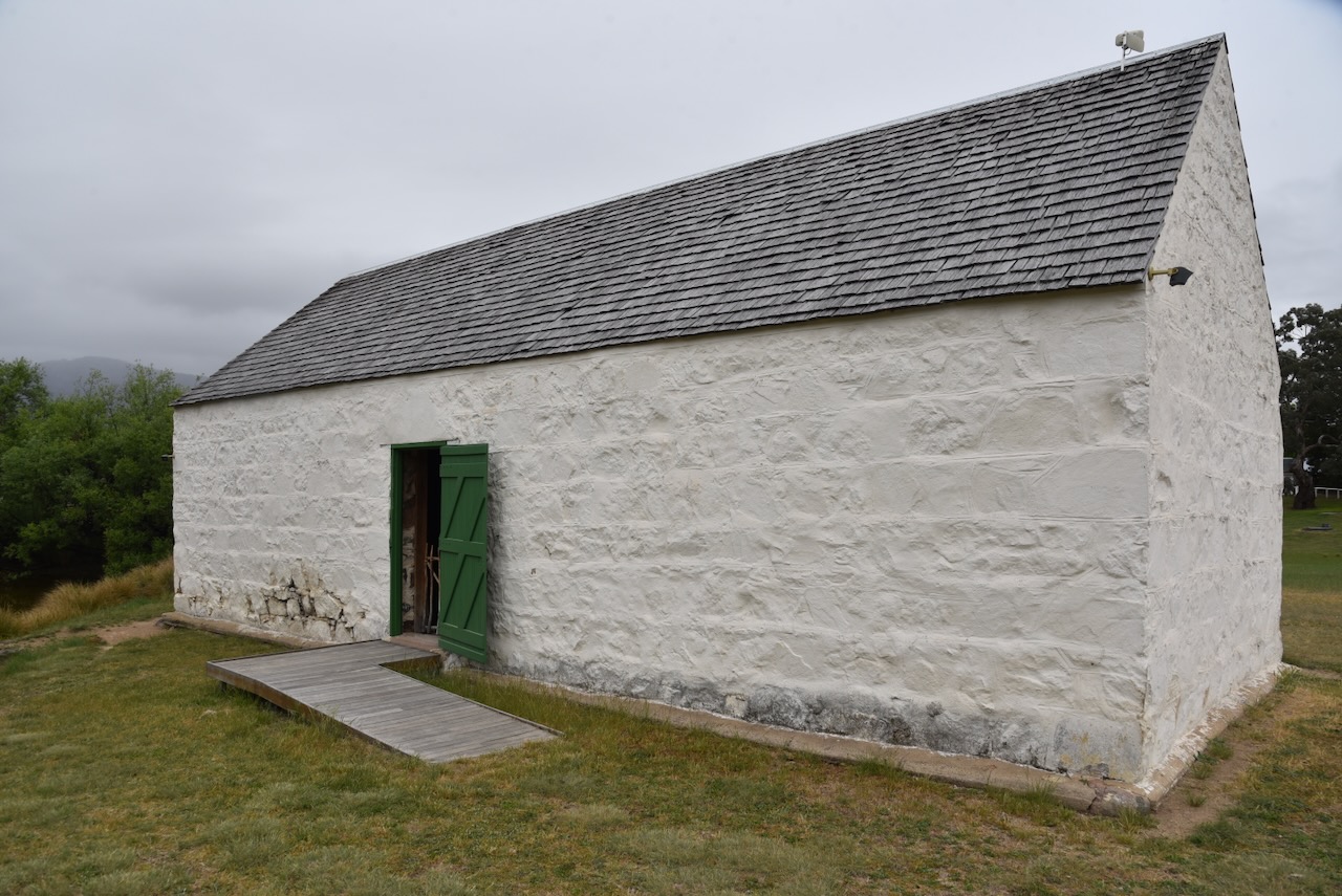 We then walked down to the convict barn, which was built c. 1830s-1850. It is constructed of limewashed coursed rubble walls and a gabled hardwood shake roof. It was initially used as a barn and later used as a wool store and for other storage. (Marshall 2010)