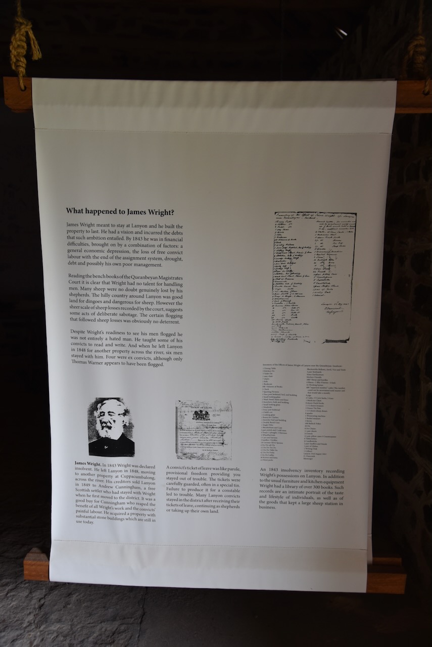 In 1841, James Wright encountered financial difficulties and was forced to sell the Lanyon property to Andrew Cunningham. Wright moved to nearby Cuppaccumbalong Station. (ancestry 2016)