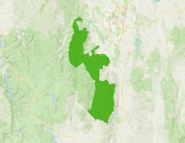 Above: The boundaries of the Namadgi National Park. Image c/o Protected Planet.