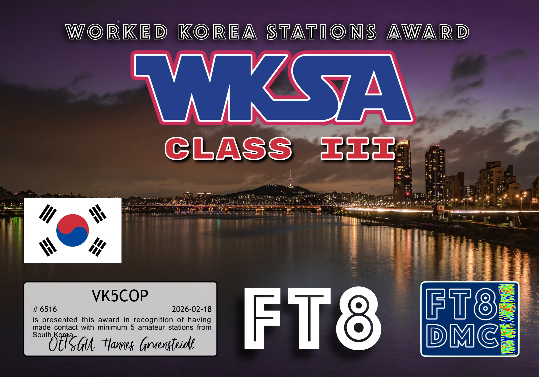 Thank you to all of the FT8 operators, and thank you to the various Award Managers.