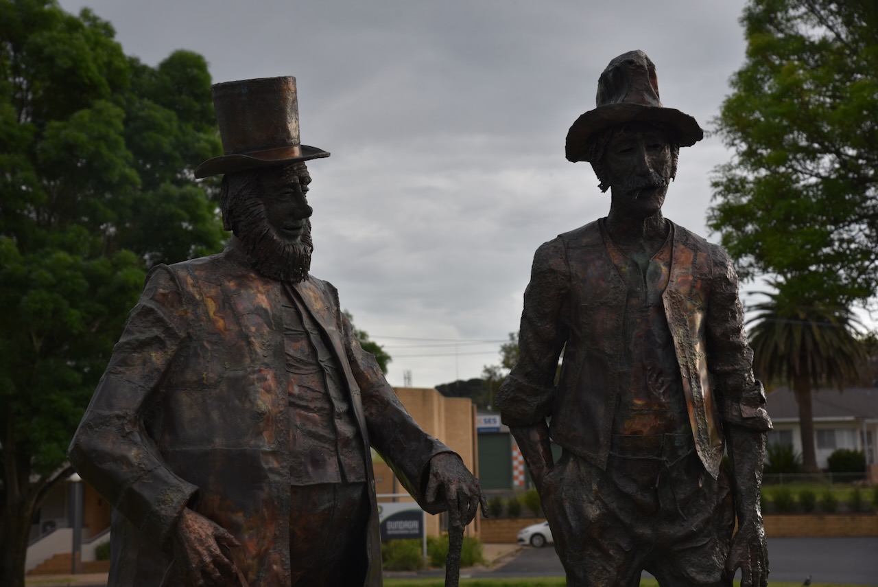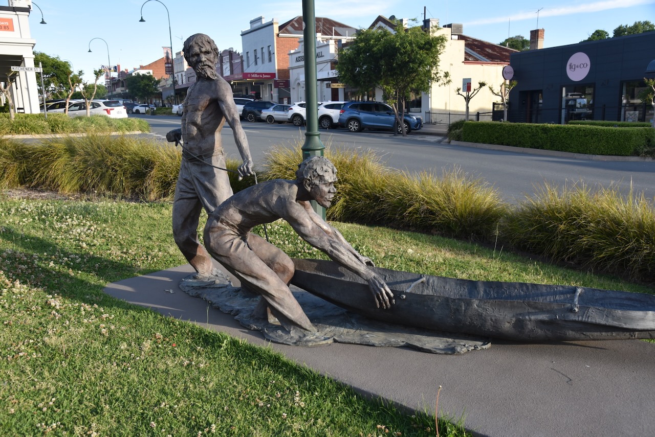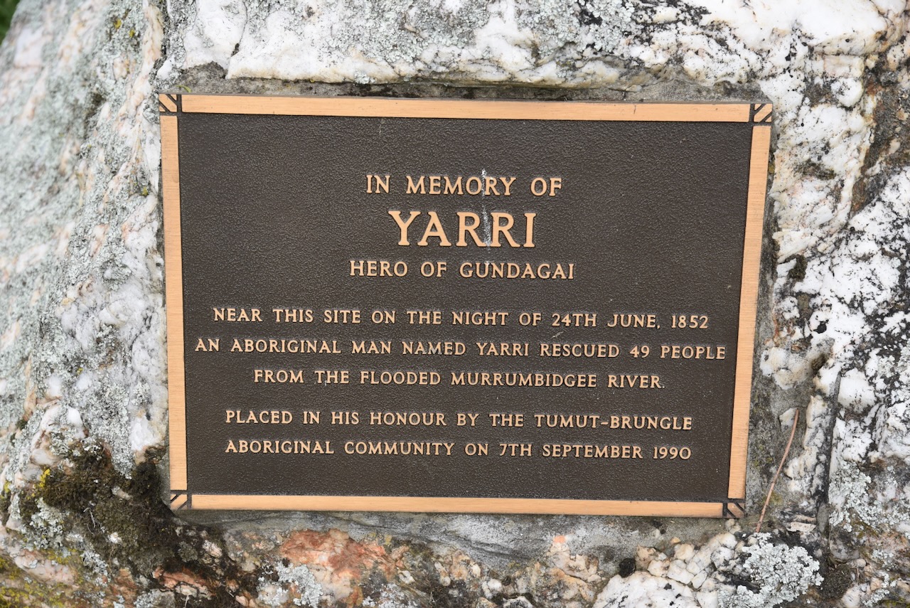 During the 1852 flood, local Aboriginal men Yarri, Jacky Jacky, and Long Jimmy played an important role in the rescue of residents of Gundagai. Using bark canoes, they rescued over 60 people, about one-third of Gundagai’s population. In the main street of Gundagai, you can find a bronze sculpture of Yarri and Jacky Jacky. (Gundagai 2023)
