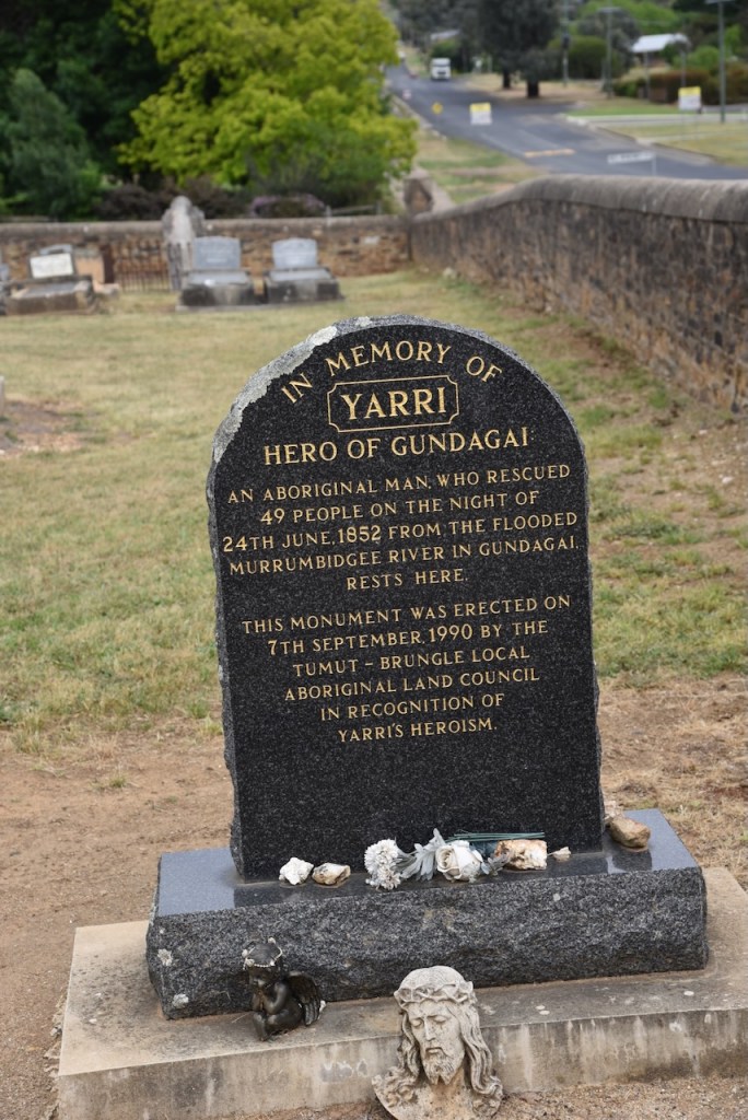 Yarri, the famous Aboriginal hero whom I mentioned earlier in this post, is also buried in the cemetery. His headstone was erected in September 1990 by the Tumur-Brungle local Aboriginal Land Council in recognition of his heroism.