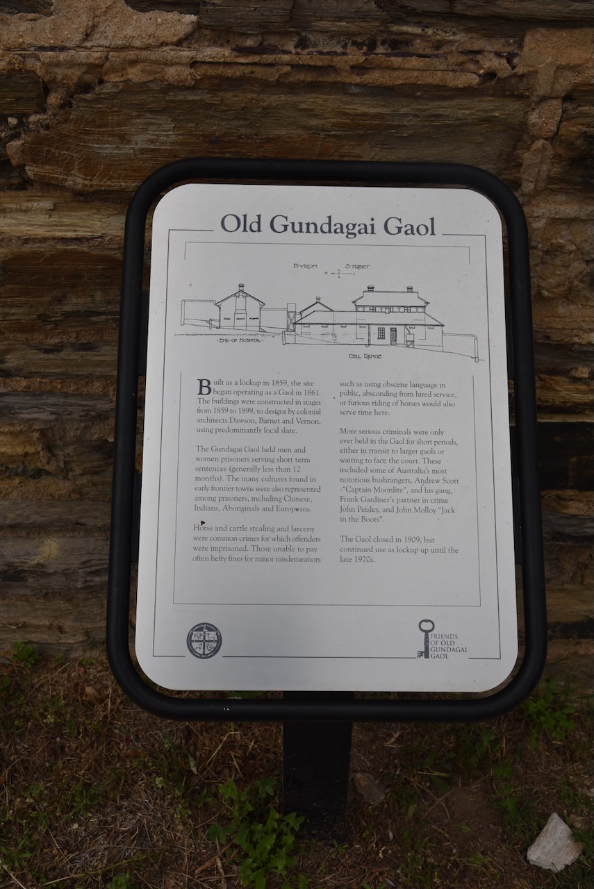 The Gaol was originally built as a lockup in 1859. In October 1859, two prisoners who were being held at the Gundagai Lockup, awaiting their trials at the Gundagai Sessions, escaped from the lockup. They struck Constable with the butt end of a pistol and batten. The two wives of the Constables were also injured while assisting their husbands in trying to prevent the escape of the men. (Nla.gov.au 2026)
