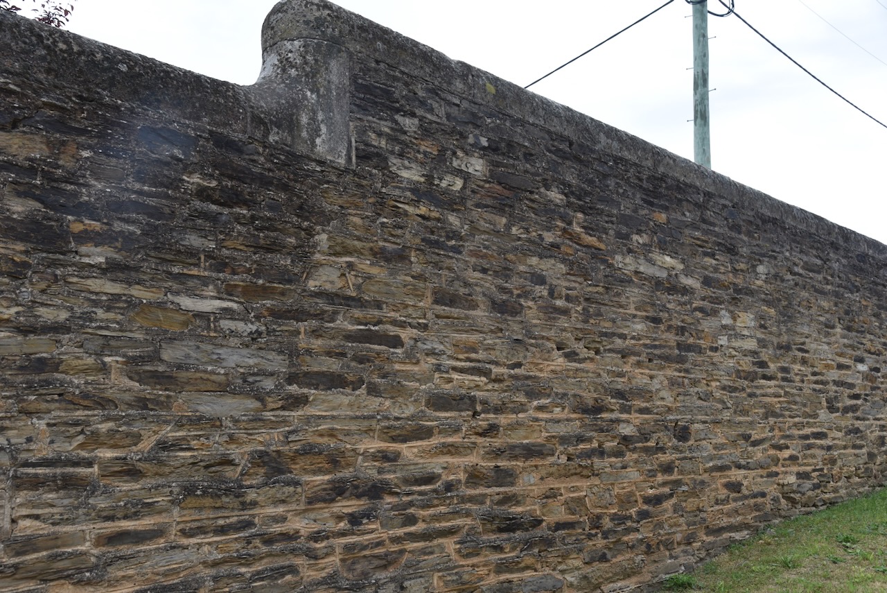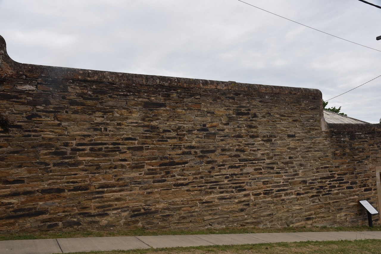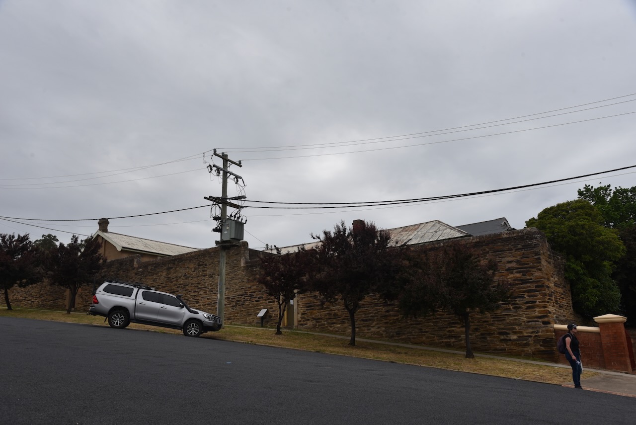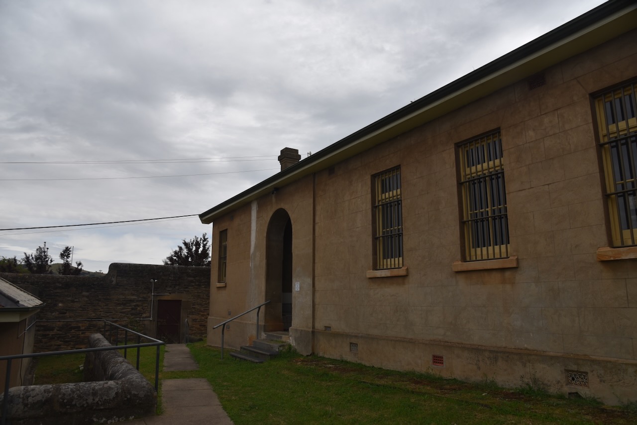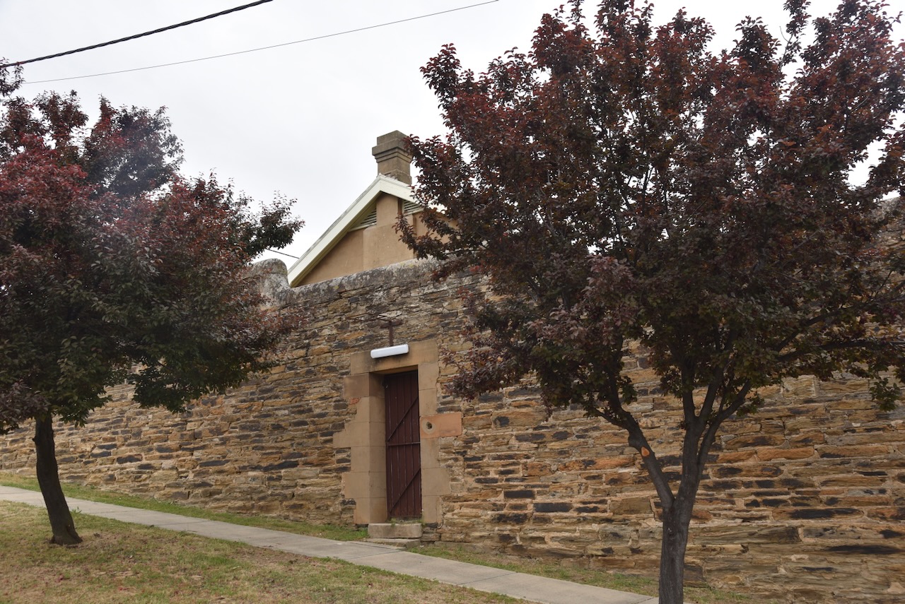 The gaol is located on the corner of First Avenue and Byron Street, Gundagai, and is surrounded by a high wall made of local slate with rendered capping.