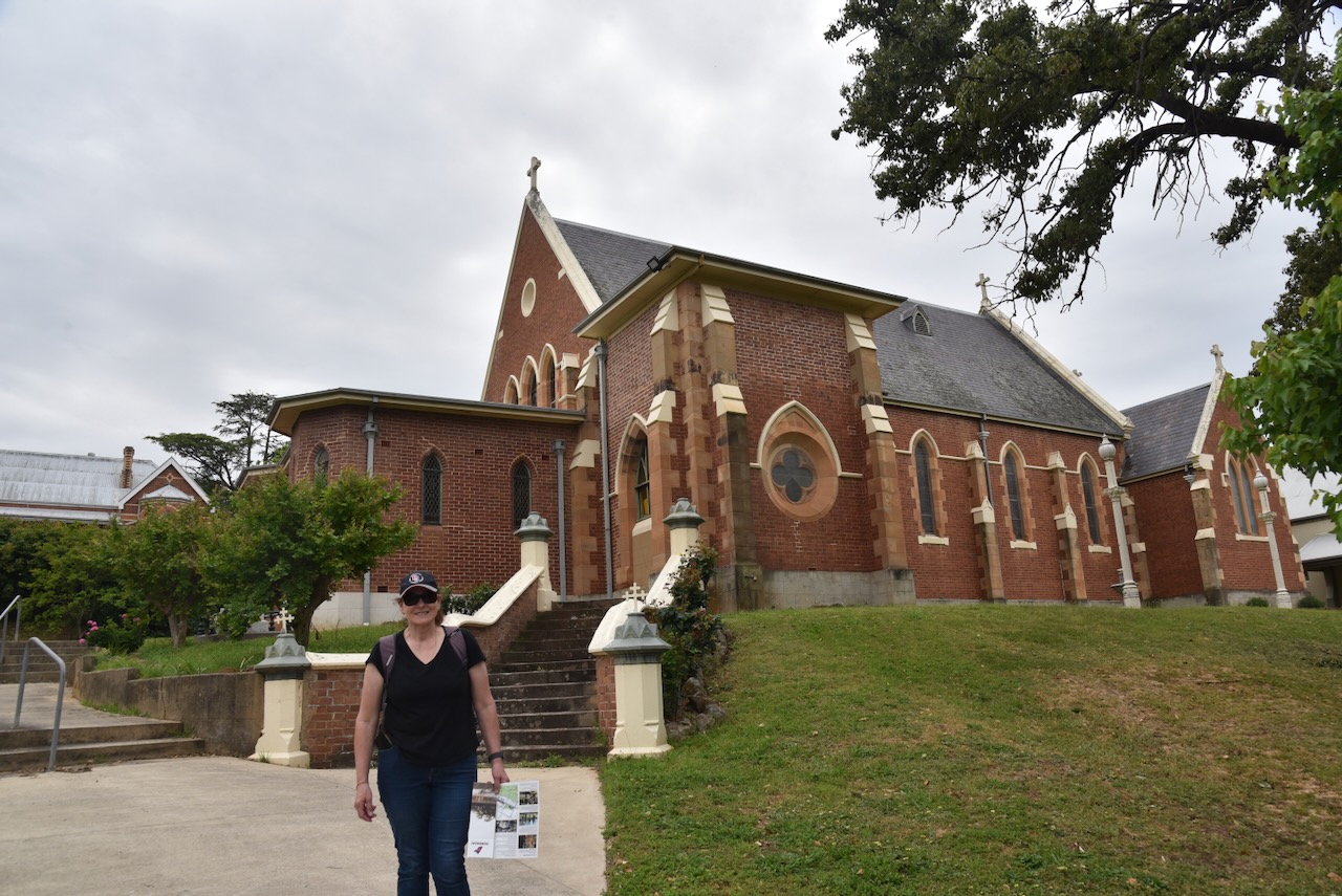 After leaving the old Gundagai Gaol, Marija and I headed back down the street for a walk. Our first stop was St Patrick’s Catholic Church. Mr Manfred of Goulburn was the architect. The foundation stone was laid on the 17th day of March 1885, by the Right Reverend Lannigan. About 1,200 people were present. There was a procession from the old church to the new. A Mass was celebrated by Father Hennessy, and the Very Rev Prior Butler gave an address. (Trove 2026) (UBC Web Design 2018)