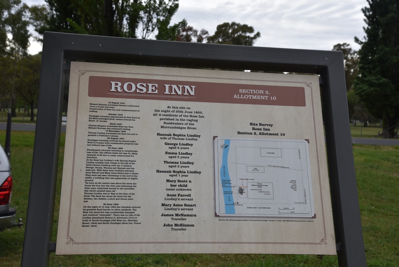 The original town of Gundagai was located on the Murrumbidgee floodplain at a location called ‘The Crossing Place.’ It was subject to several flooding incidents, including the 1844 floods. During those particular floods, Henry Bingham, the Crown Commissioner for the Murrumbidgee District, praised the Aboriginal people for their efforts in the rescue of people during the flood. (Gundagai 2023)