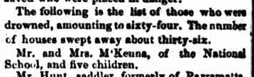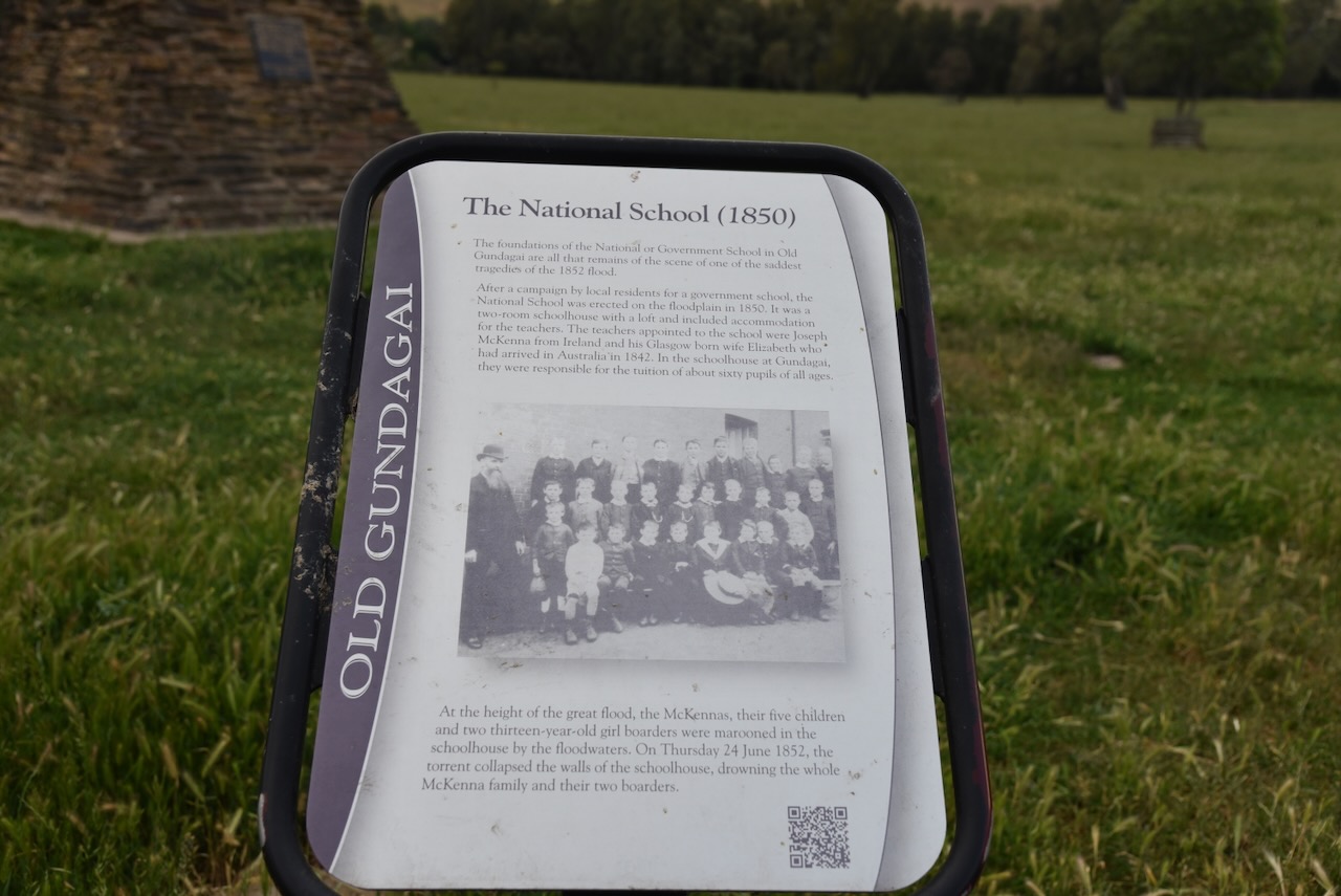 Tragedy struck the school during the Gundagai flood. At the peak of the flood, the McKennas, their 5 children and two 13-year-old female boarders were marooned in the schoolhouse. On Thursday the 24th day of June 1852, the flood consumed the school building which resulted in the drowning of all those at the school.