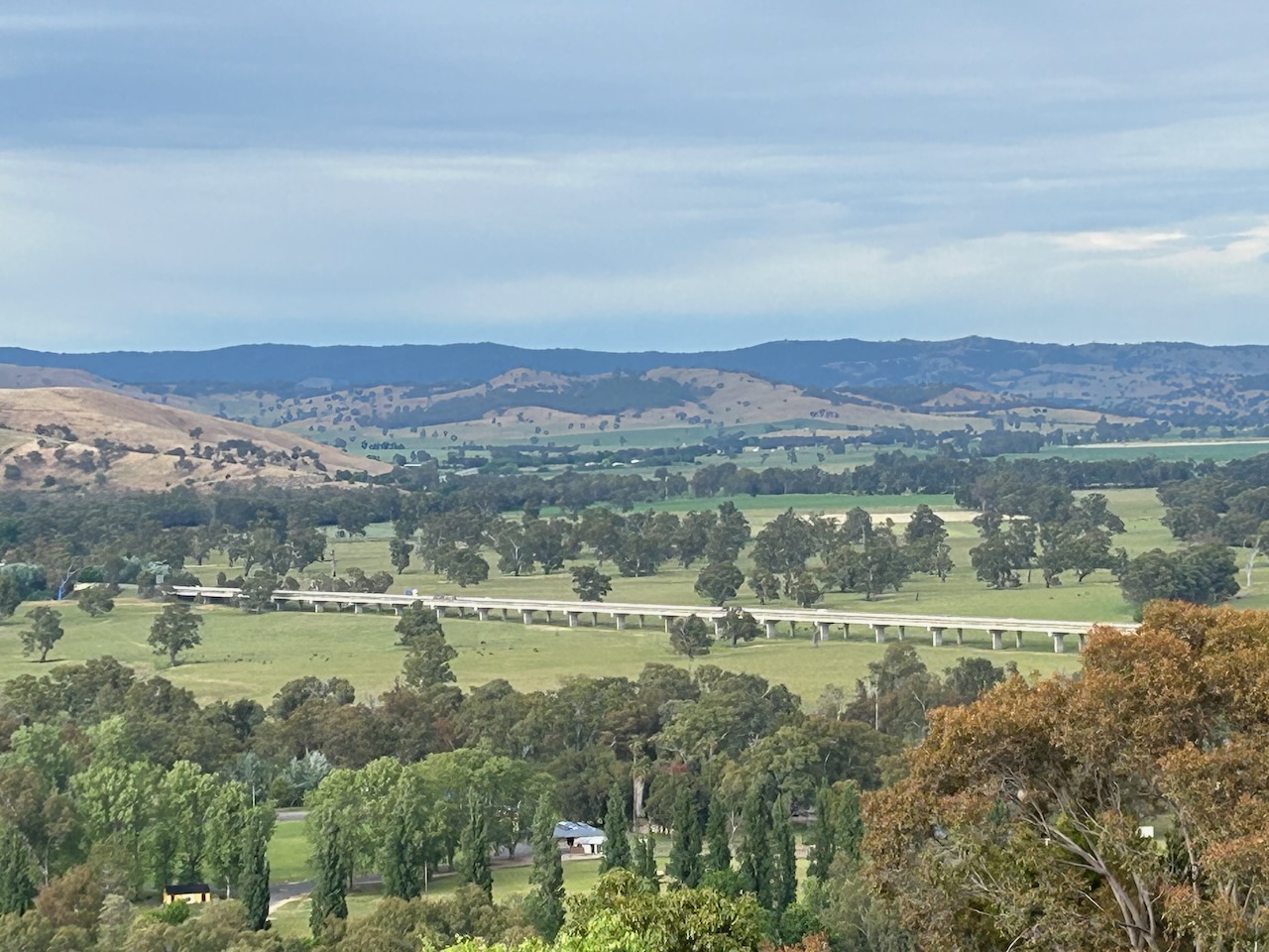 The dual carriageway Sheahan Bridge over the Murrumbidgee River is clearly visible from the lookout. It is the 3rd longest bridge in New South Wales. (Wikipedia 2024)