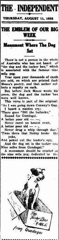 Many years later, in 1923, Australian poet Jack Moses penned another poem, called ‘Nine Miles from Gundagai.’ It relates to the story of his dog, which sat on the tucker box nine miles from Gundagai. (Wikipedia 2026)