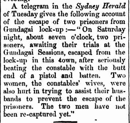 Above: part of an article from The Gundagai Times, Sat 18 Apr 1874. Image c/o Trove