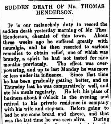 Dr Henderson suffered from neuralgia, which is an intense stabbing or burning nerve pain. He was discovered dead in bed. A coroner’s inquest was held, and after reviewing the evidence, the Coroner and Jury returned a verdict that his death arose from natural causes. (Trove 2026)