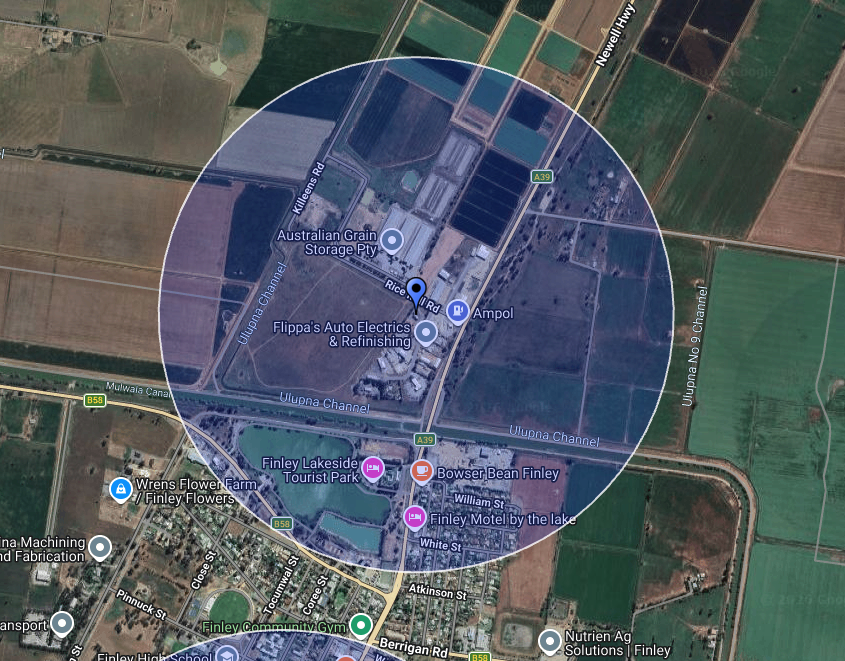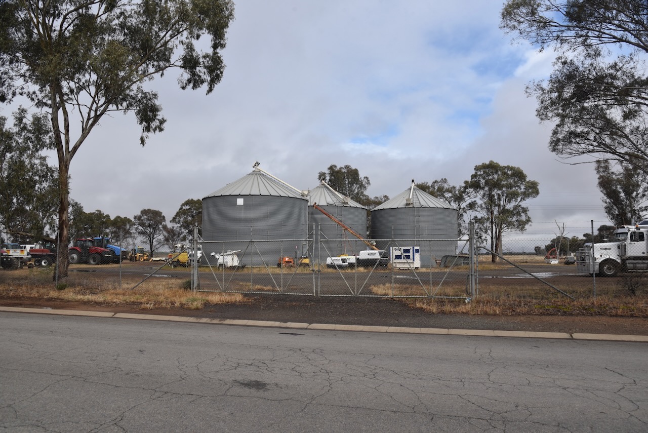 After leaving Finley silo on Tuesday, 4th November 2025, Marija and I drove a short distance to the Finley North silo VK-FNH2. The silo is located to the north of Finley, on the western side of the Newell Highway, at the junction with Rice Mill Road.