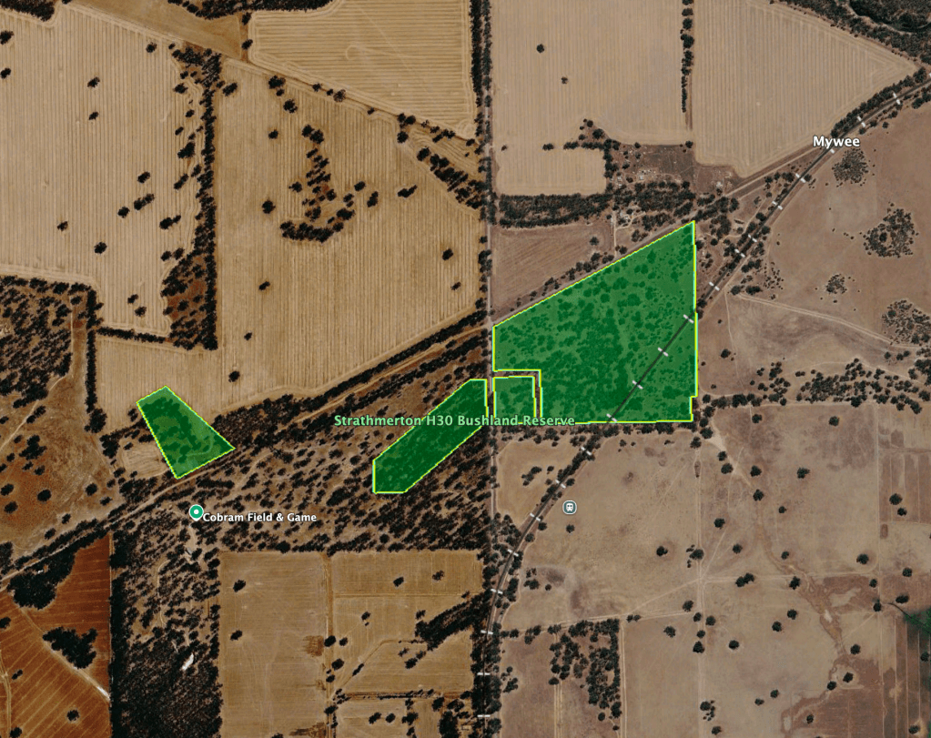 Although called Strathmerton Bushland Reserve, the park is actually in the district of Mywee. The town of Strathmerton is about 10km south. Mywee is an Aboriginal word meaning ‘a well.’ (Wikipedia 2025)