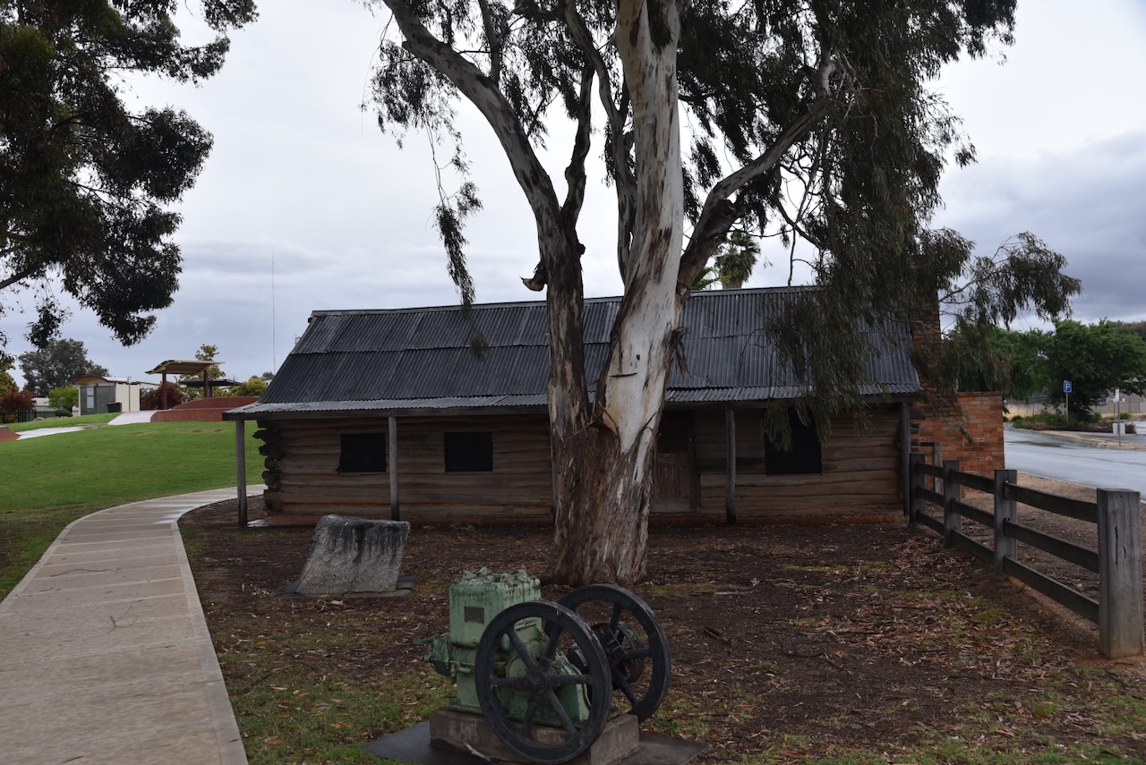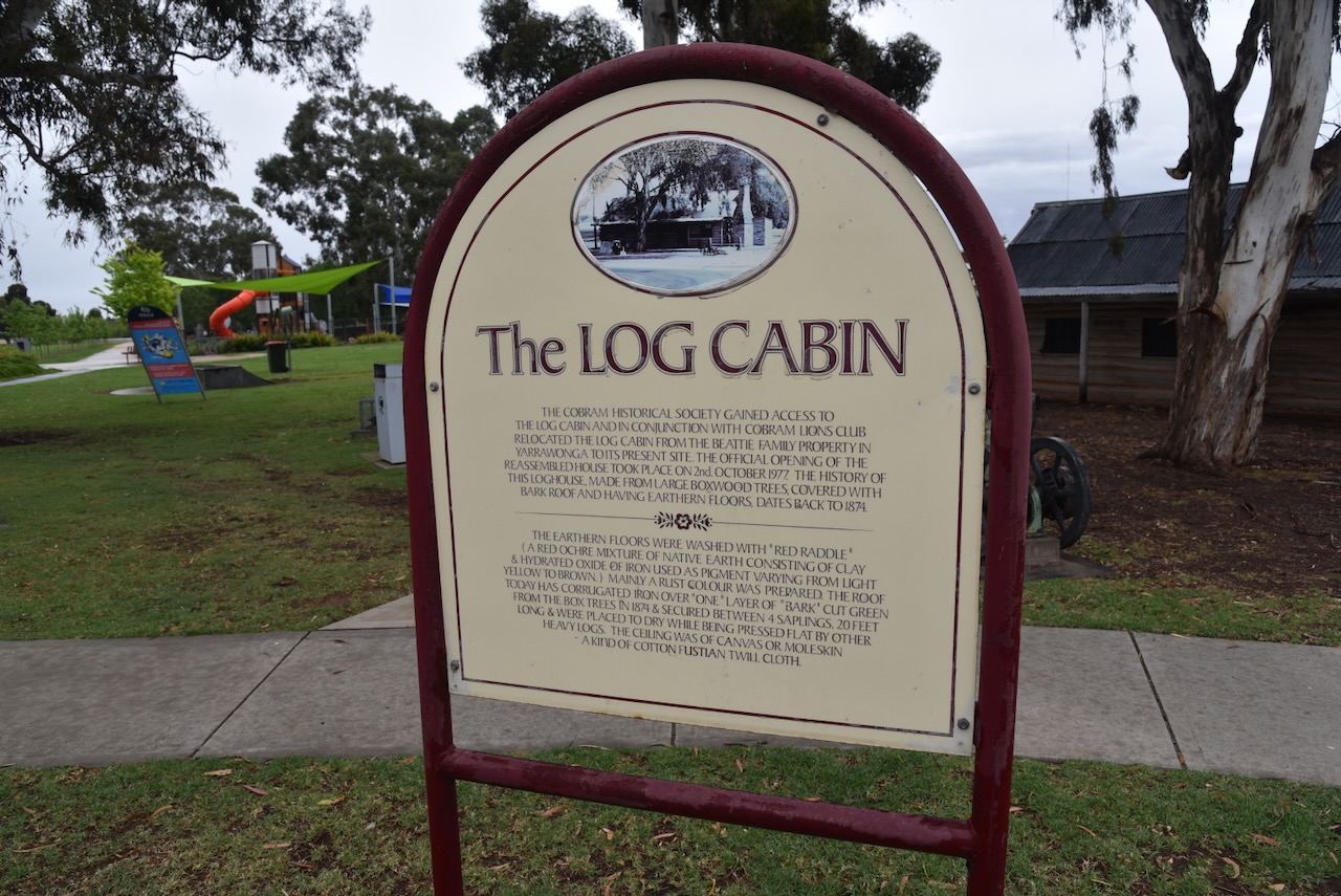 Another attraction in Cobram is the old log cabin. It was relocated from the Beattie family property in Yarrawonga to its present location. The log cabin dates back to 1874 and was made from large boxwood trees covered with a bark roof and earthen floors.