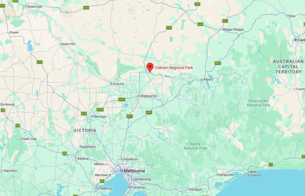 Above: Map showing the location of Cobram Regional Park. Map c/o Google Maps