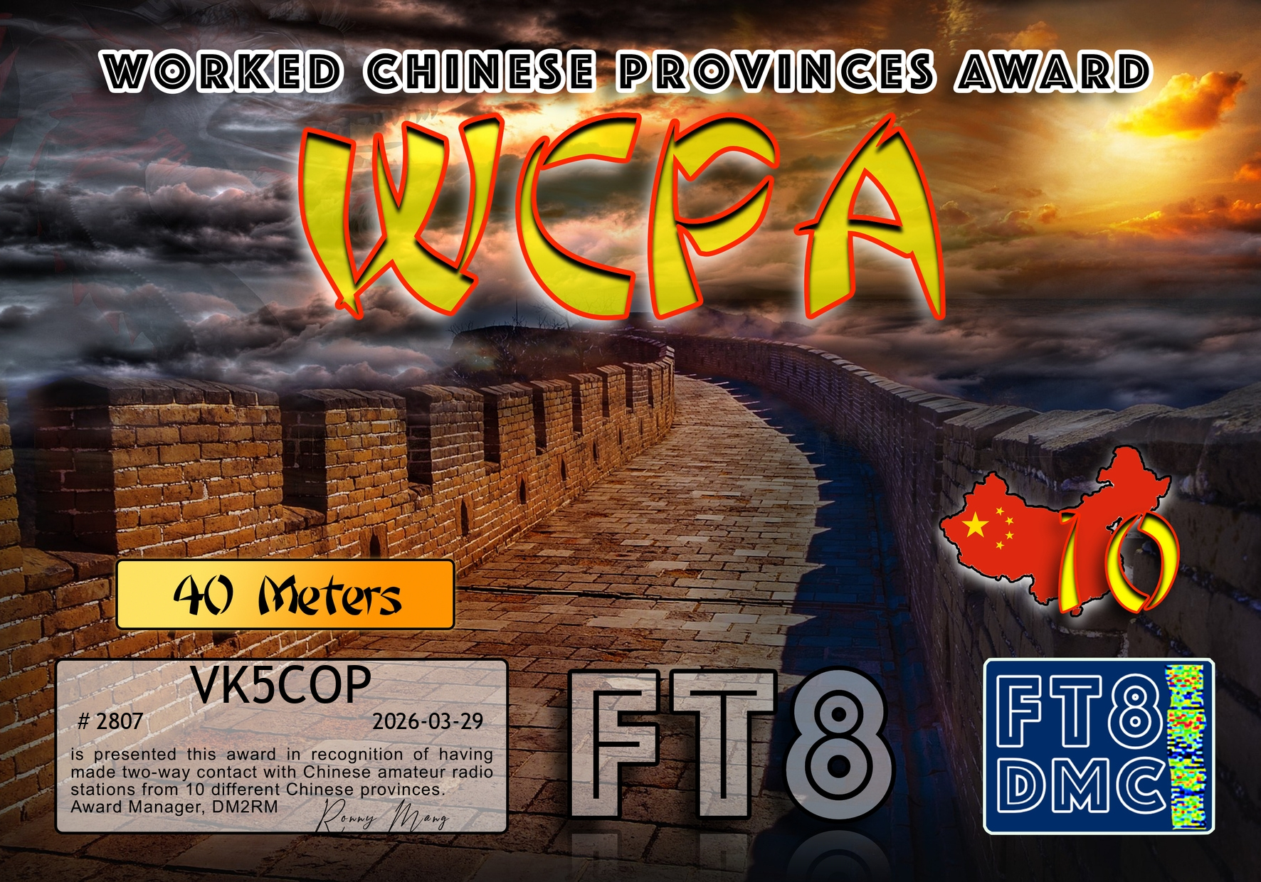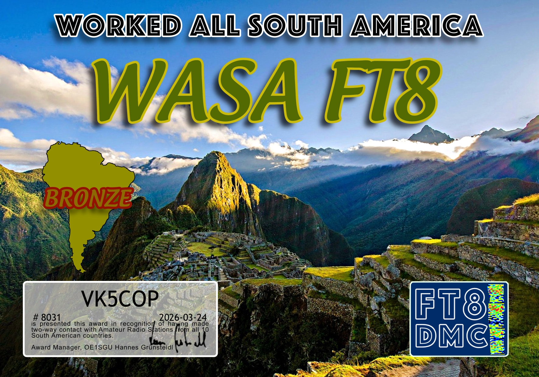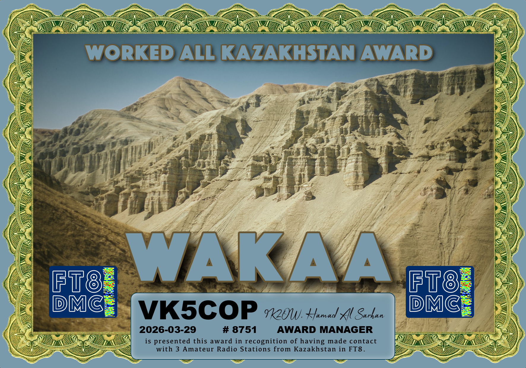 Thank you to all of the FT8 operators around the world and to the various Award Managers.