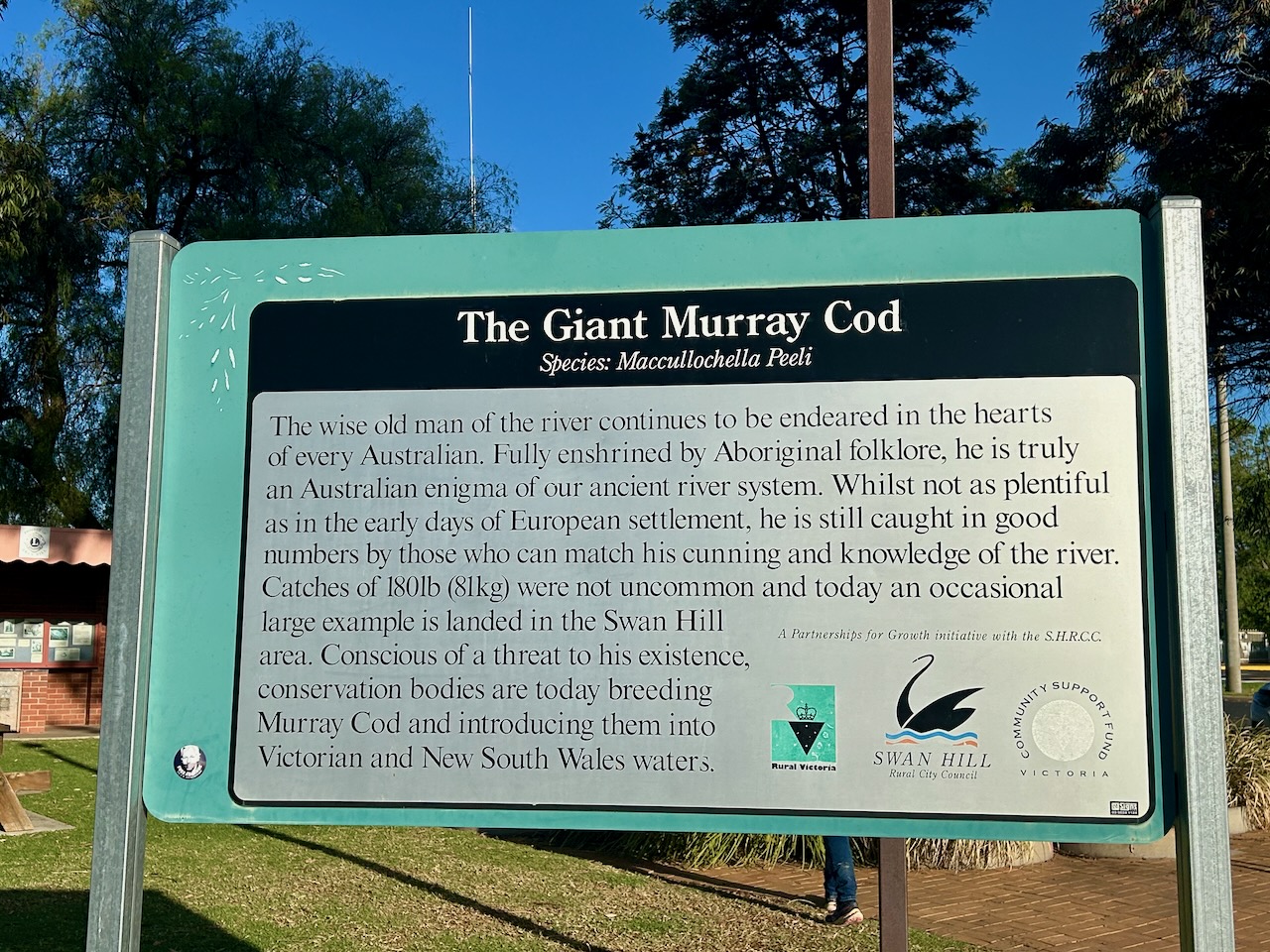 Marija and I then headed out to activate the two silos in Swan Hill. On the way, we stopped at the Giant Murray Cod, a monument to the large Murray Cod caught in the Murray River.
