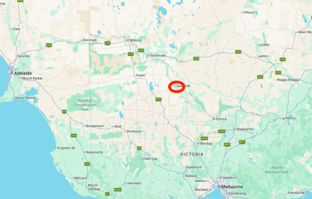 Above: Map showing the location of Swan Hill. Map c/o Google Maps