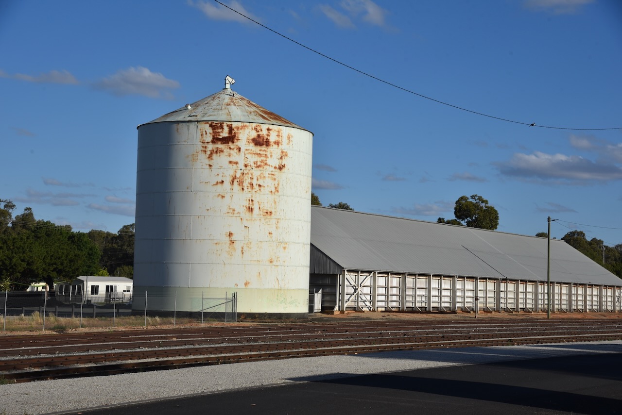 The Swan Hill silo VK-SWL3 is located on the western side of Monash Drive, alongside the Bendigo Piangil railway.