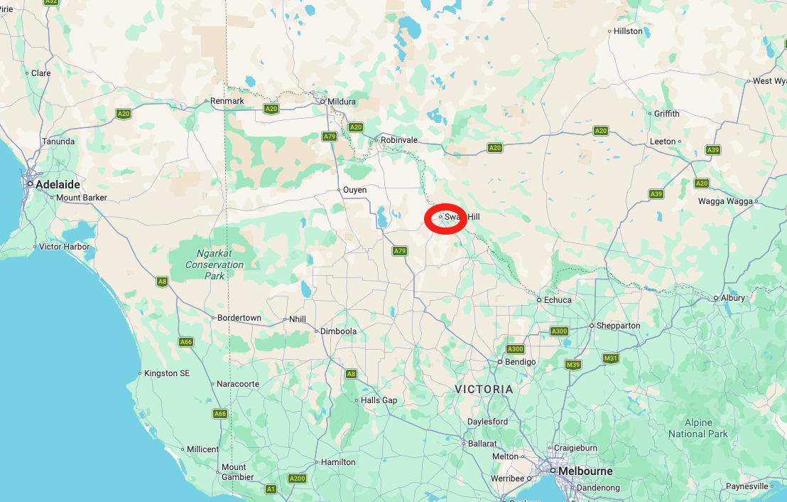 Above: Map showing the location of Swan Hill. Map c/o Google Maps
