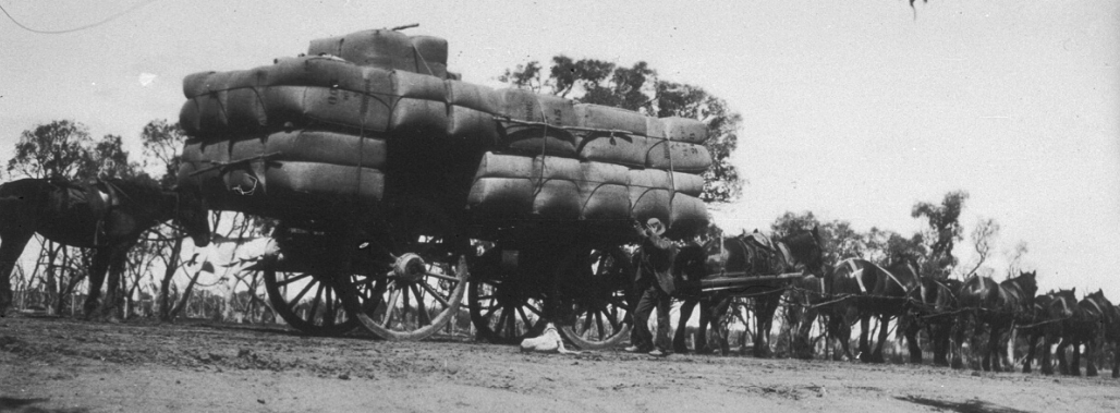 Above: a wagon load of Noorong wool on the way to Koondrook Railway Station. Image c/o Mitchell Library, State Library of New South Wales