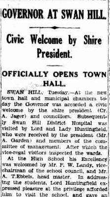 The Swan Hill Town Hall was officially opened on Tuesday, the 17th day of September 1935. A Gala Ball was held that was attended by over 1,000 people. (Trove 2026)