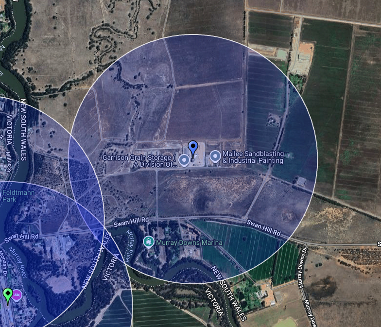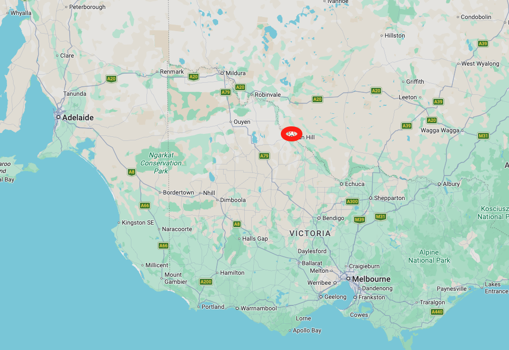 The Murray Downs silo is located on Cygnet Lane, on the northern side of Swan Hill Road.