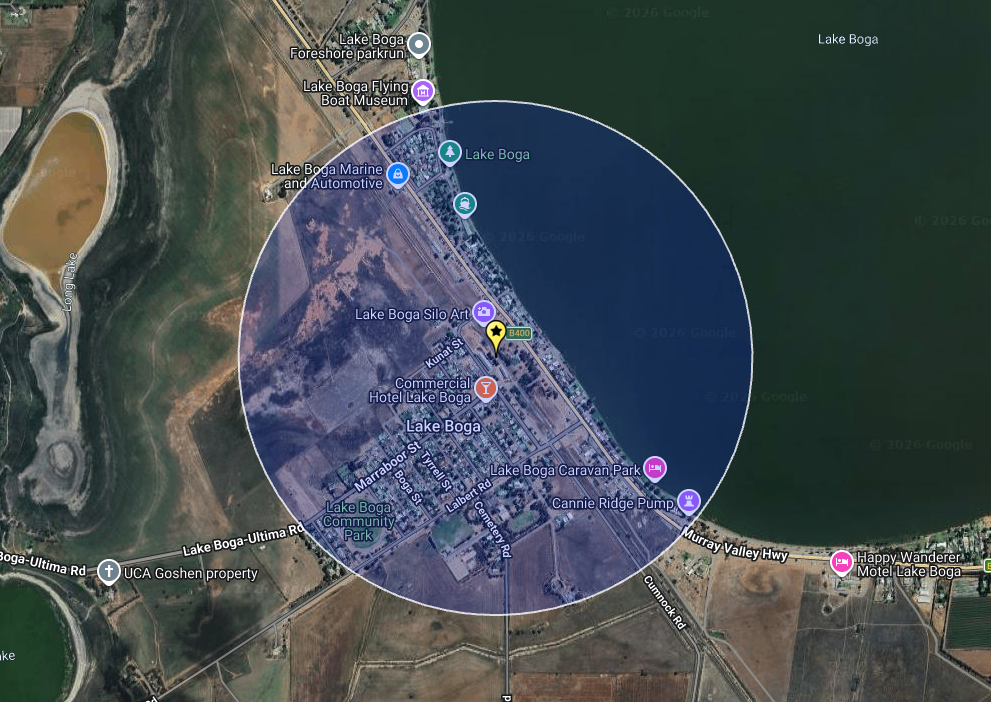 Our first activation for Thursday, 6th November 2025, was the Lake Boga silo VK-LKA3, for the Silos On The Air (SiOTA) program. Lake Boga is located about 17 km south of Swan Hill, and about 323 km north of Melbourne.