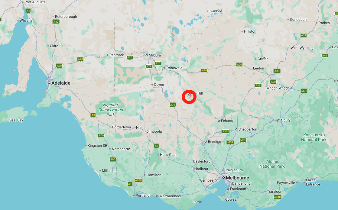 Our first activation for Thursday, 6th November 2025, was the Lake Boga silo VK-LKA3, for the Silos On The Air (SiOTA) program. Lake Boga is located about 17 km south of Swan Hill, and about 323 km north of Melbourne.