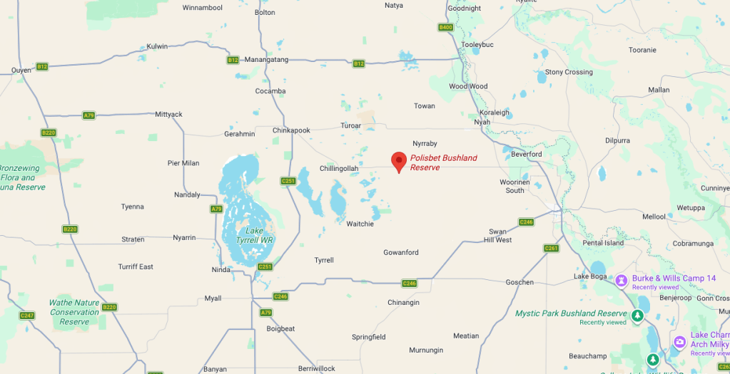 Our fourth activation for Friday, the 7th day of November 2025, was the Polisbet Bushland Reserve VKFF-5732. The reserve is located about 37 km northwest (by road) of Swan Hill in Victoria.