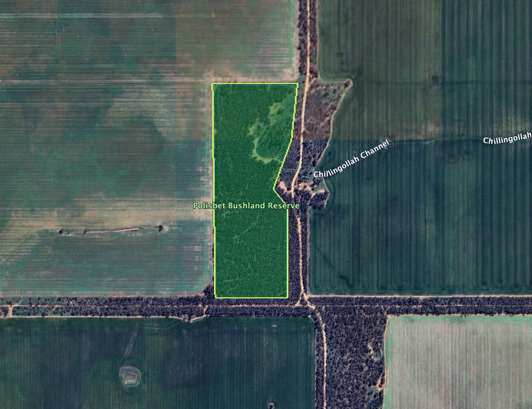 Above: Map showing the location of Polisbet Bushland Reserve. Map c/o Google Maps