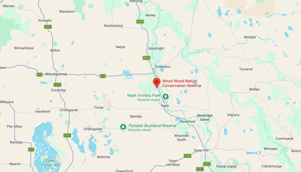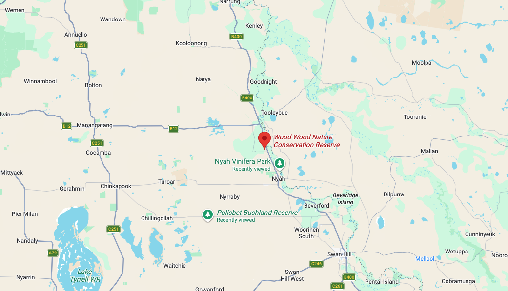 Marija and I were trying to activate as many parks as we could on Friday, the 7th day of November 2025, as we needed to head back home on Saturday after a very enjoyable time away. Our next activation was the Wood Wood Nature Conservation Reserve (NCR) VKFF-2490. The park is about 36 km northwest of Swan Hill.
