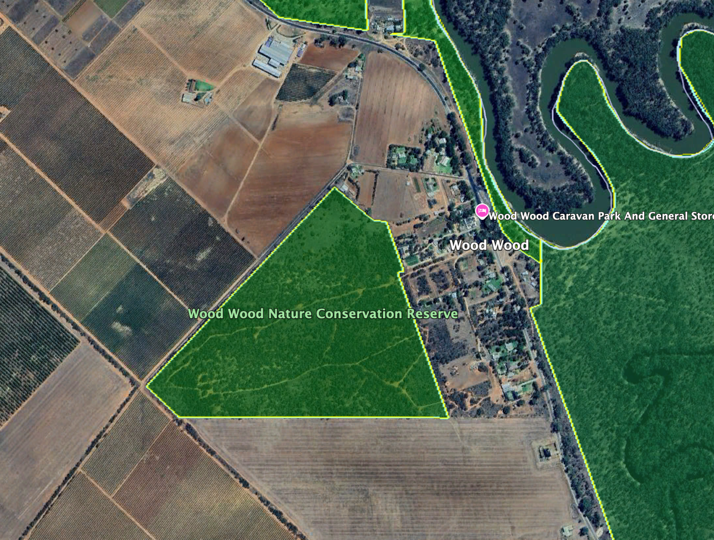 Wood Wood is believed to be derived from the Aboriginal words Kulki Kulki, meaning Wood Wood. The Wood Wood Post Office opened on the 17th day of December 1900 and closed in June 1987. In 1939, the Wood Wood Methodist Church was opened. It was dedicated to Mr W Gelinger, who was one of the members of the community who identified the need for a church. (Wikipedia 2026)