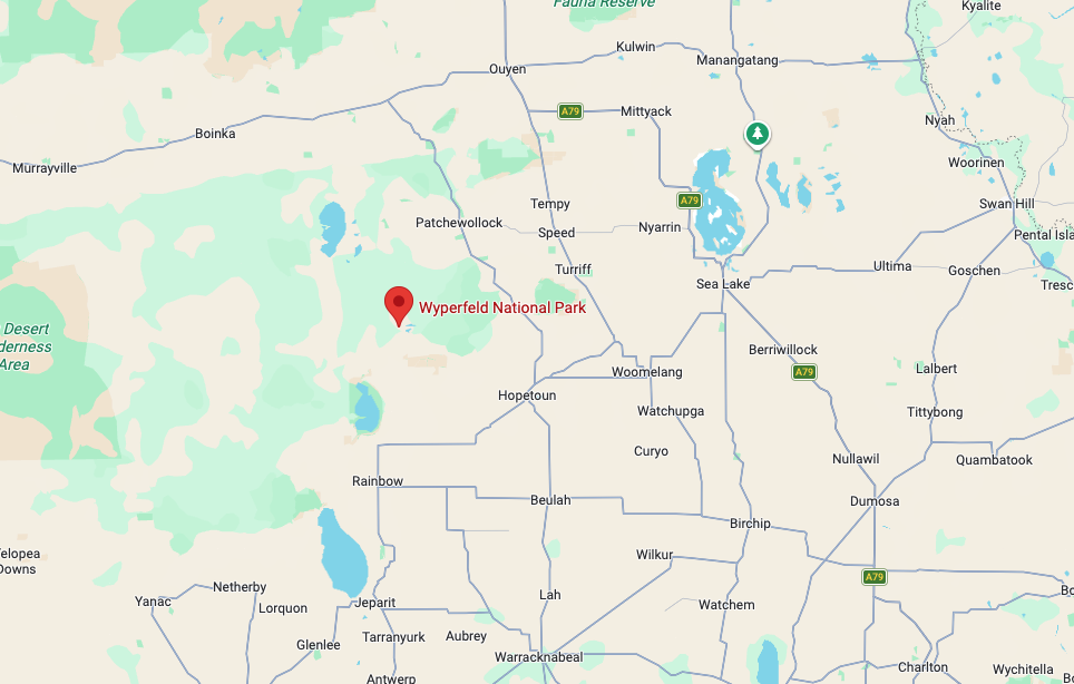 Above: Map showing the location of Wyperfeld National Park. Map c/o Google Maps