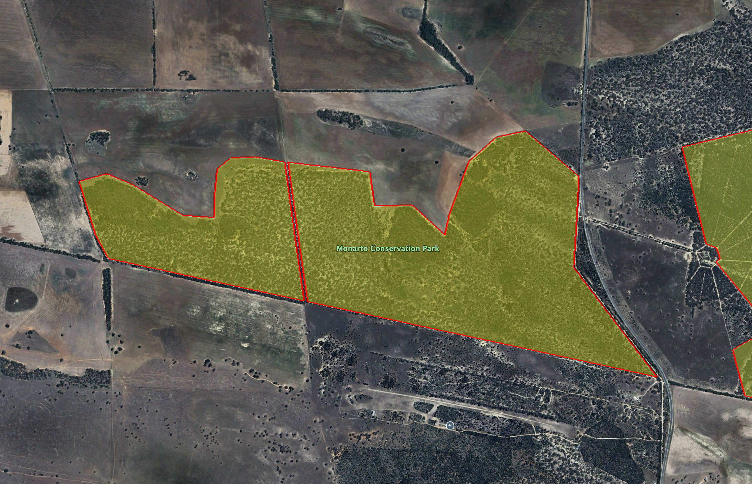 Above: the boundaries of Monarto CP. Image c/o Google Earth